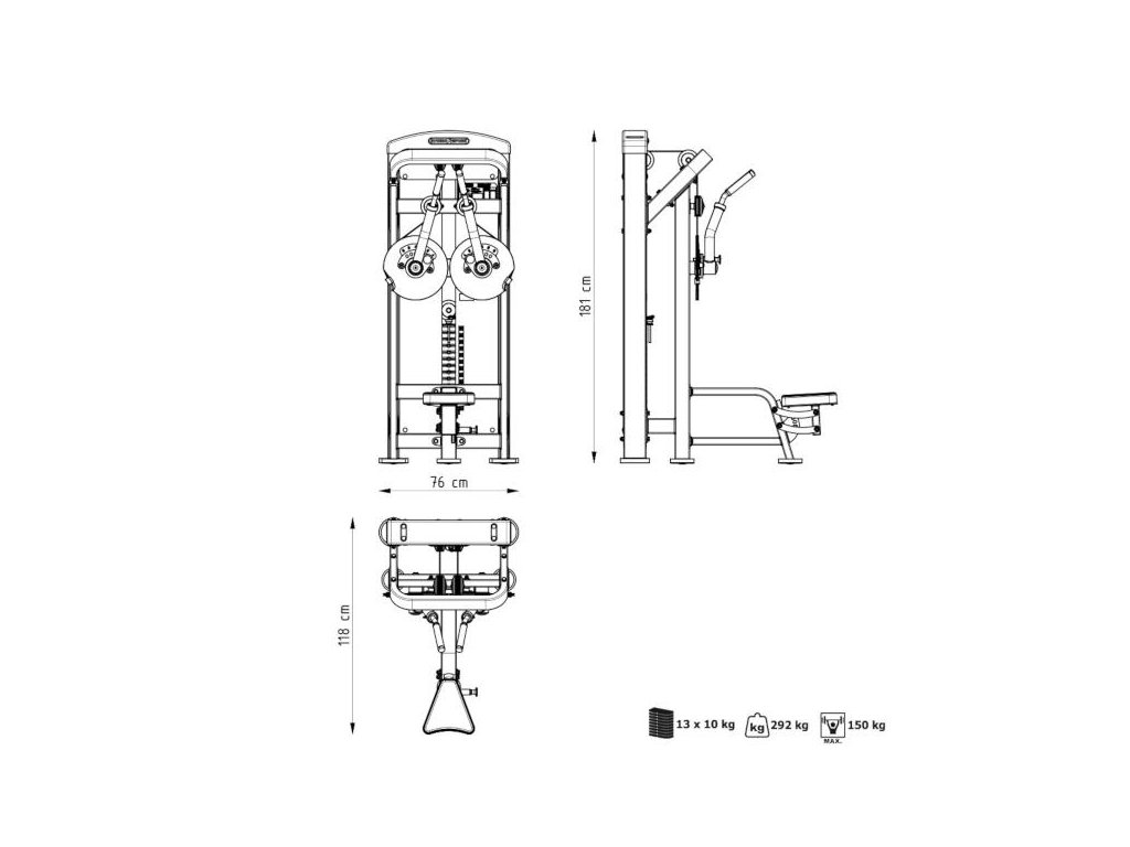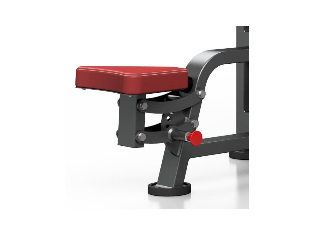 Upažování MARBO MP-U236 je nekompromisní, profesionální vybavení pro Vaší posilovnu. Pro výrobu byly zvoleny ocelové profily 120x60x3mm a 80x40x3mm, které zaručují nečekanou trvanlivost. Zátěž tvoří 13ks 10kg cihel. Celková váha závaží dodávána se strojem je tedy 130kg. Sedadlo je výškově regulovatelné ve čtyřech stupních a je podpořeno pneumatickým pístem, takže pro změnu výšky nemusíte ze stroje sesedat. Každé rameno jde nastavit do jedné ze šesti poloh. Všechny přenastavení se provádí pomocí červených, pružinových jistících kolíků. Polstrovaní je ze syntetické kůže sešité režnou nití značky COATS vyplněné tvrdou pěnou, to celé ja na 3mm hrubé, ocelové desce. Tichý chod zajištuje zakrytování černým plastem, z přední části je kryt opatřen průhledem pro snadné nastavení požadovaného počtu cihel. Stroj je navíc opatřen velikou samolepkou, která instruuje cvičence, jaké cviky jdou na stroji provádět a které skupiny svalů daný cvik posiluje.