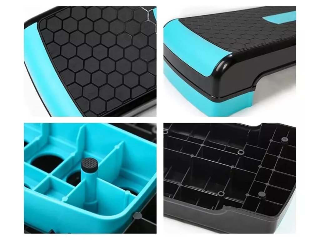 Získáte moderní fitness aerobní step můstek/bedýnku (fitness stepper) ve špičkové kvalitě. Třístupňový nastavitelný systém výšky Vám zasjití širokou variaci cviků. Celý povrch bedýnky je protiskluzový pro maximální bezpečí i komfort při cvičení. Při cvičení step aerobicu cvičenci překonávají vystupováním na bedýnku a sestupováním zpět na podložku výškový rozdíl. Tím dochází k podstatně jinému zatěžování svalstva dolní poloviny těla než u běžného aerobiku. Step aerobic je výborný na redukci váhy, zvyšuje celkovou fyzickou kondici a pomáhá tvarovat celé tělo (zejména nohy a hýždě). Jedná se o velmi efektivní aerobní aktivitu, při níž můžete velmi rychle zhubnout. Navíc vám cvičení vyplaví velké množství endorfinů, které vám zajistí psychickou pohodu a zbaví vás stresu.