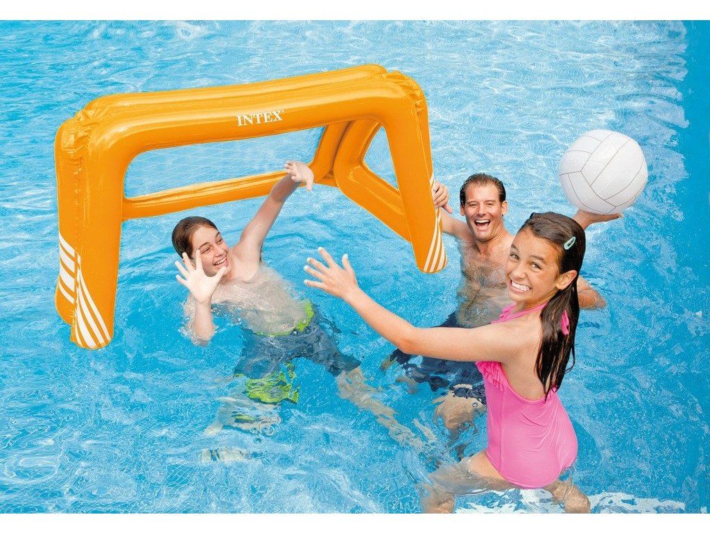 Nafukovací branka do bazénu. Velké využití pro míčové sporty pro děti. Je možné použití ve vodě i na suchu. Barevný motiv dodáván dle aktuálních skladových zásob.