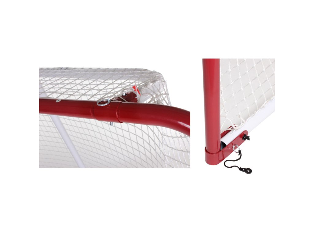 Merco Goal je kvalitní skládací hokejová branka určená pro trénink střelby v domácích podmínkách. Branka je vybavená speciálním zacvakávacím systémem, takže branku jednoduše složíte a následně i rozložíte na snadno uskladnitelnou velikost. A byť je rám branky ocelový, s váhou 13 kilogramů je branka i velice lehká a snadno přenositelná. Součástí branky je 4mm silná polyamidová síť. Jelikož se jedná pouze o tréninkovou branku, je nutné počítat s tím, že při tvrdých střelách hráčů se mohou na konstrukci objevit drobné promáčkliny, nebo pozůstatky od nárazu puků, které jsou ale jenom otázkou vzhledu a na funkčnosti branky nic nemění. Rozměry 183 x 122 x 76 cm.Doplňkové parametry