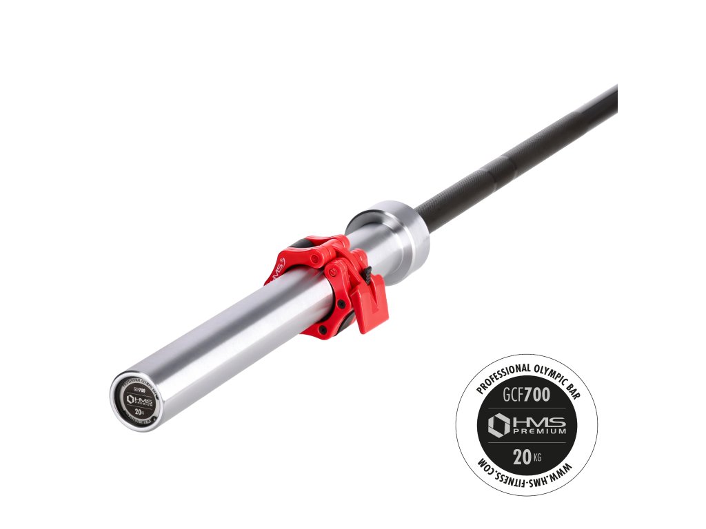 Olympijská osa GCF700 HMS PREMIUM byla vyrobena ze speciální chromované oceli, která prošla procesem kalení. Produkt HMS se vyznačuje pevností v kombinaci s dokonalou pružností. Součástí soupravy jsou dva plastové uzávěry ZG1000. Pevné a pohodlné uchopení hřídele je zajištěno vroubkováním na povrchu. Maximální zatížení je 700 kg.
