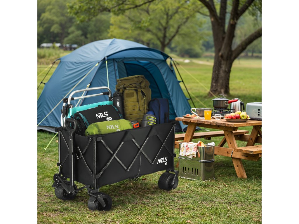 Turistický vozík NILS Camp NC2604 je ideální volbou pro kempování, pikniky, rodinné výlety k vodě nebo práci na zahradě. Kombinace pevné konstrukce, velké kapacity a snadné obsluhy zaručuje komfortní použití v jakémkoli terénu.