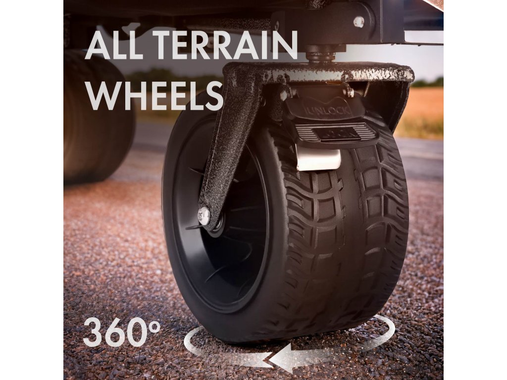 Vozík je vybaven pevnými koly o rozměrech 18 x 10 cm, vyrobenými z kombinace polypropylenu a PVC. Toto provedení zajišťuje dobrou přilnavost, stabilitu a plynulou jízdu – jak na asfaltu, tak na písku či trávě. Díky tomu je NC2604 vhodný do rozmanitých terénů.