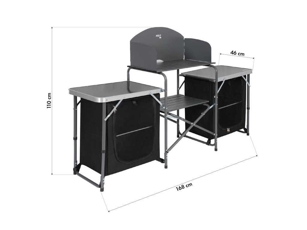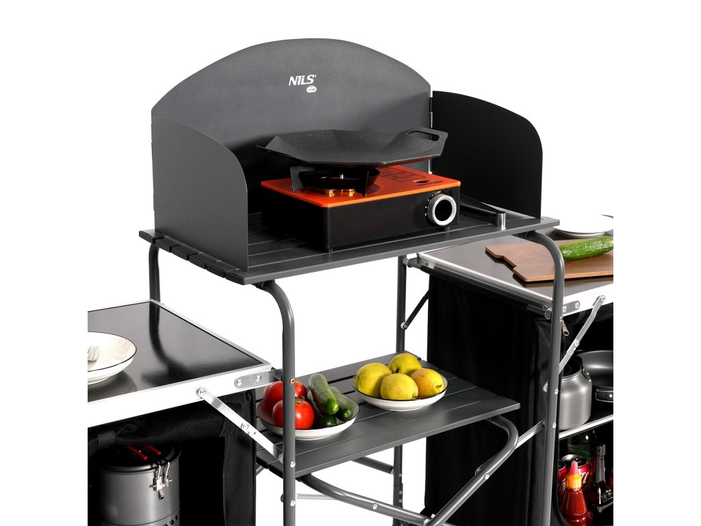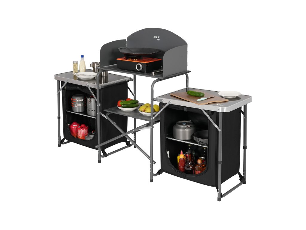 Kempingová skříňka NILS Camp NC3042 je komplexním řešením pro všechny, kteří ocení pořádek, pohodlí a ergonomii při vaření pod širým nebem. Vytvořena s ohledem na kempování, delší výlety a rodinné pobyty na kempu, nabízí plnohodnotné kuchyňské místo, které umožňuje připravovat jídla téměř jako doma.