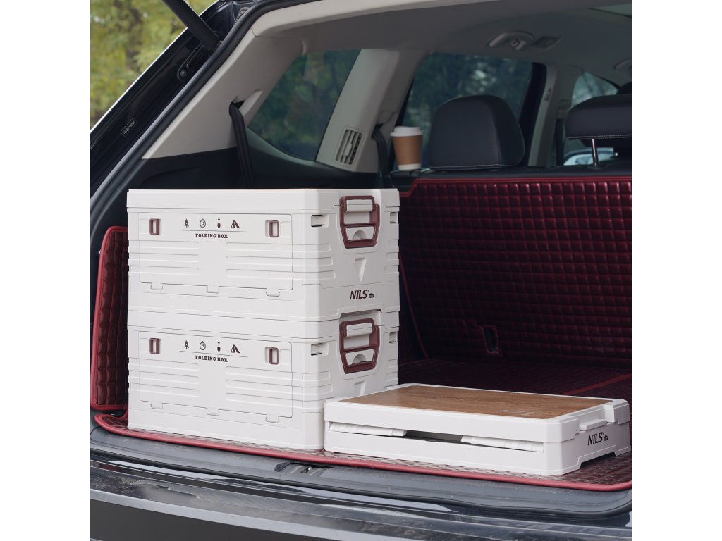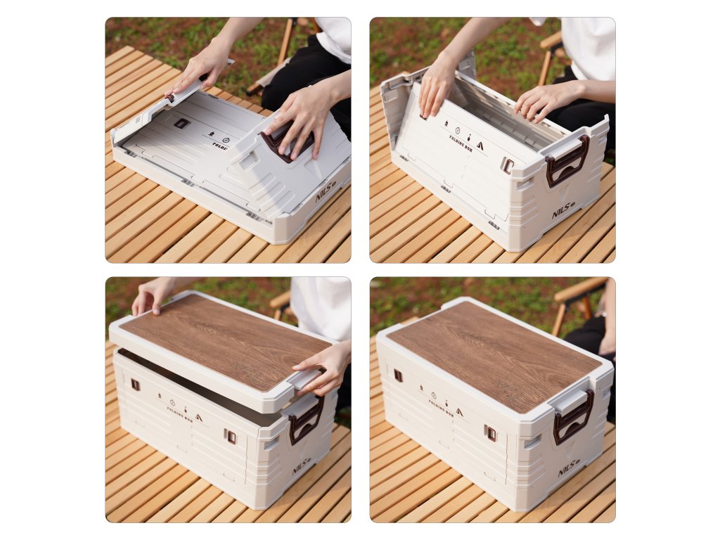 Skládací box NILS Camp NCB4002 2v1 s víkem a dřevěnou deskou 32L béžový