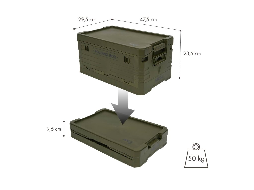 - Rozměry složeného boxu: 47,5 x 29,5 x 9,6 cm