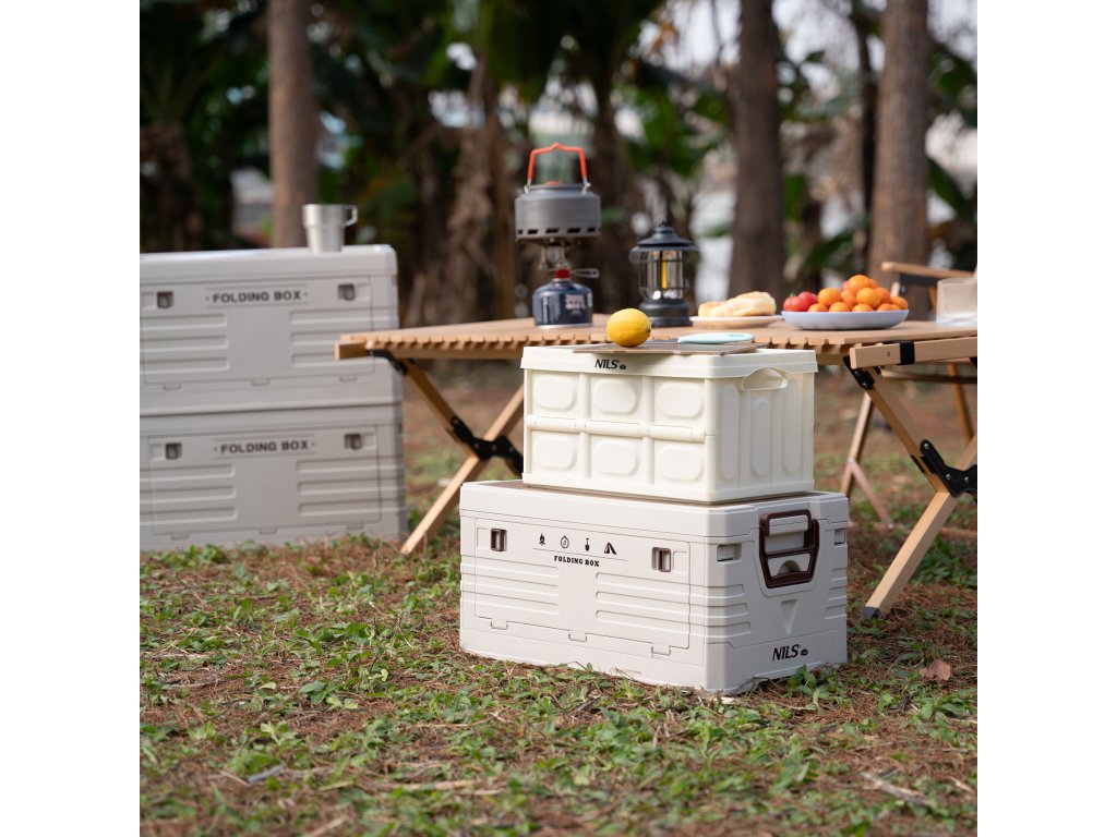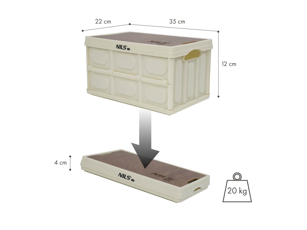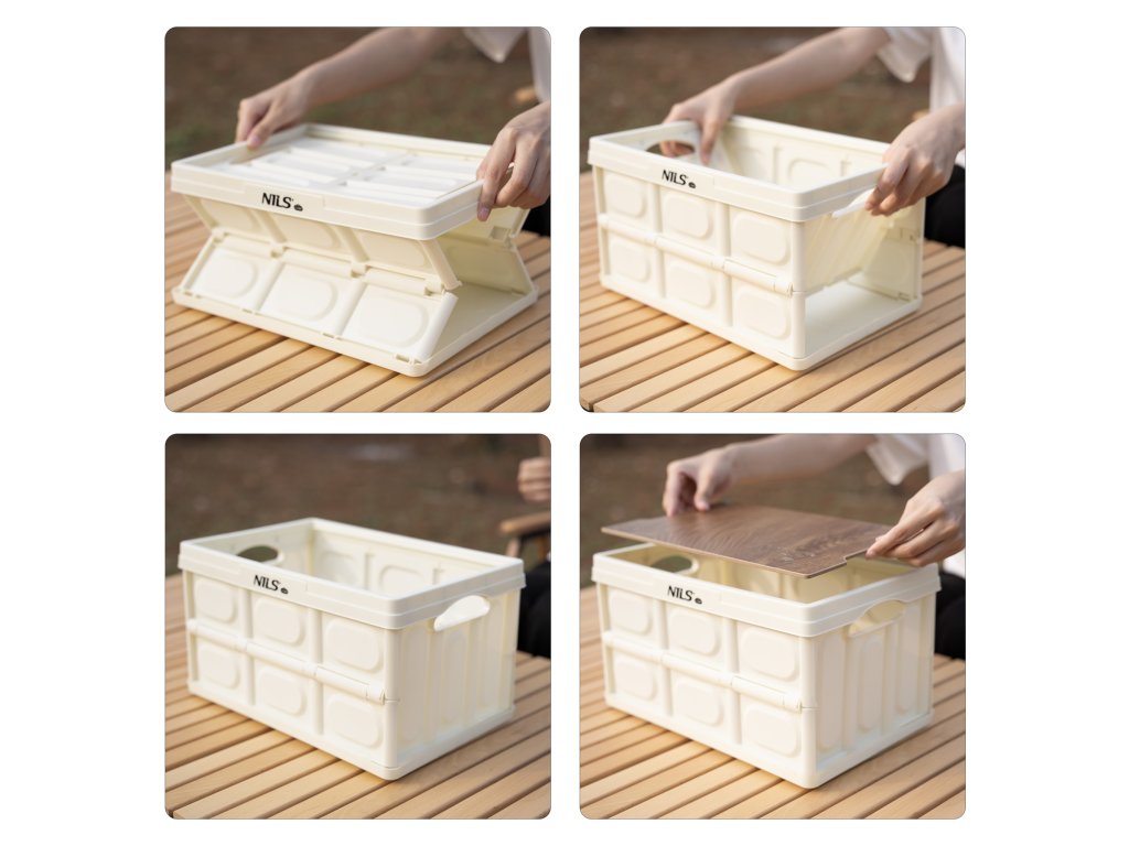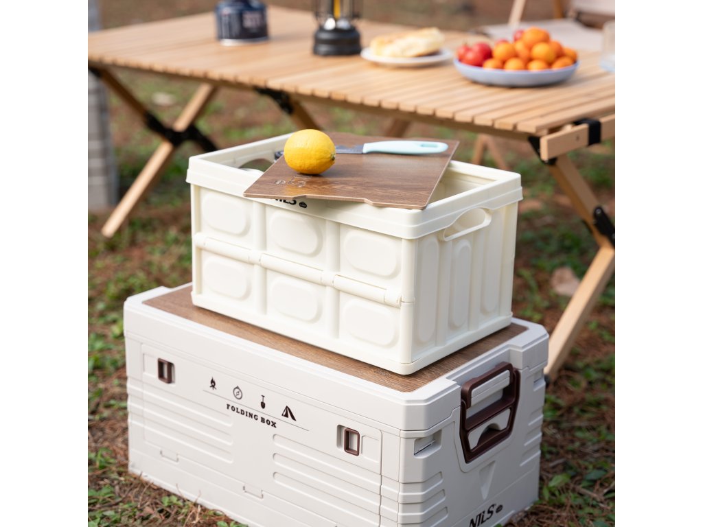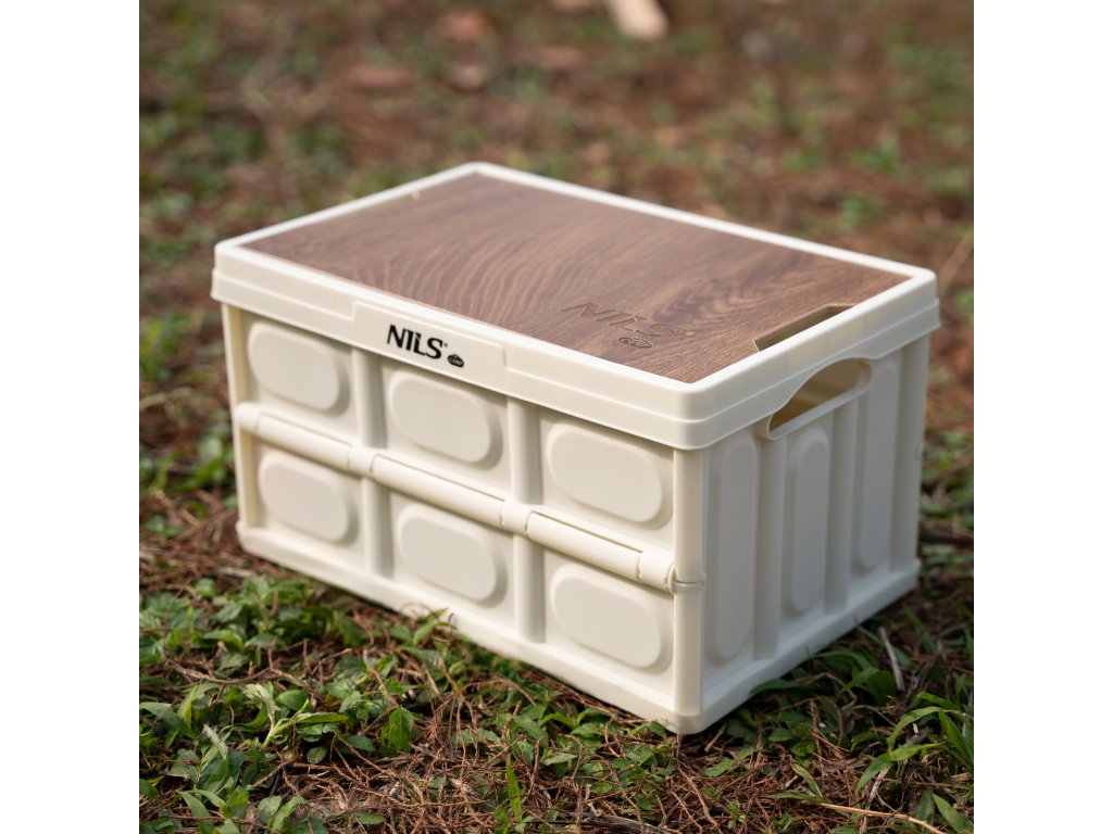 Skládací přepravka NILS Camp NCB4007 s dřevěným víkem 2v1 9L bílá