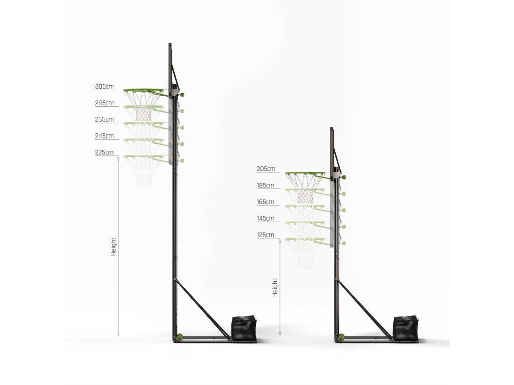 od těch nejmenších, kteří trénují své první basketbalové hody, až po dospělé, kteří chtějí dovést svou techniku k dokonalosti. S Exit NovaStar je to všechno možné. Jedinečný design usnadňuje přechod z juniorské na seniorskou pozici. Výškově stavitelný rám se skládá ze dvou rámových trubek u juniorské verze a ze tří rámových trubek u seniorské verze. Pro seniorskou pozici jednoduše namontujete další díl, díky kterému bude basketbalová deska vyšší.