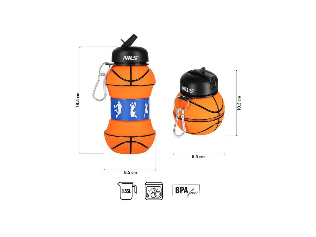 Skládací silikonová láhev NILS Camp NC4104 550ml basketbal