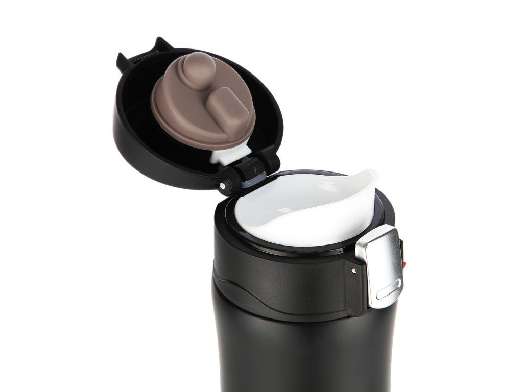 Model NCB10 má velmi pohodlný systém otevírání. Stačí posunout pojistku a stisknout tlačítko. Ve víčku je plastový zobáček, který usnadňuje vylévání nápoje a silikonový výlisek, který zamezuje rozlití nápoje, když je víčko zavřené.