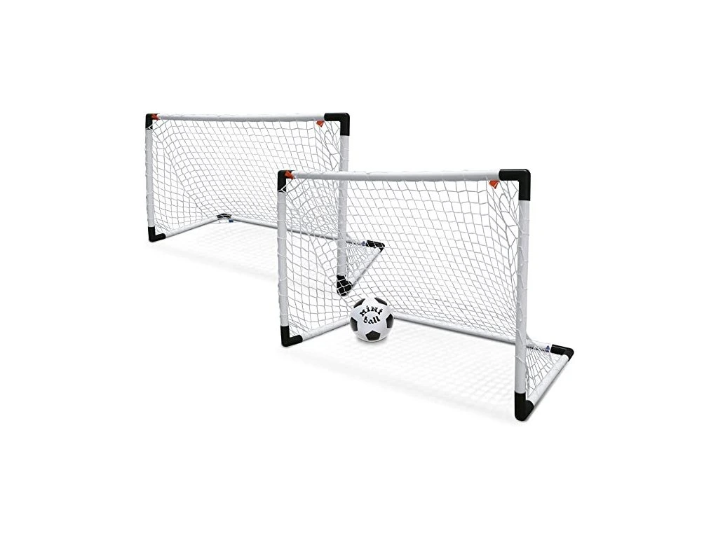 Dvě fotbalové branky pro děti od italského výrobce Mondo. Jde o kvalitní a precizně zpracované branky z tvrzeného plastu, které na svém místě drží pevně a stabilně. Dvě menší branky mají rozměr 91x63 cm. Má pěknou černo-bílou barvu. V ceně je i míč.