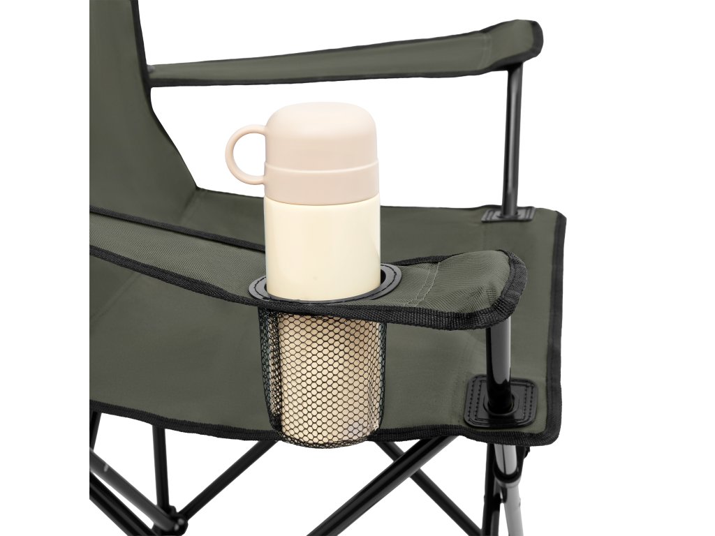 NILS Camp NC3301 je turistická židle doplněná o boční držák nápojů. Její konstrukce zajišťují komfortní odpočinek bez ohledu na místo – ať už jde o dovolenou v kempu, piknik v parku a nebo posezení s přáteli na zahradě. Sedák a opěradlo jsou vyrobeny z odolného polyesteru 600D s PE zátěrem, odolného proti oděru a vlhkosti. Černý lem zajišťuje čistý vzhled a celou židli drží stabilní ocelový rám s černým práškovým lakem.