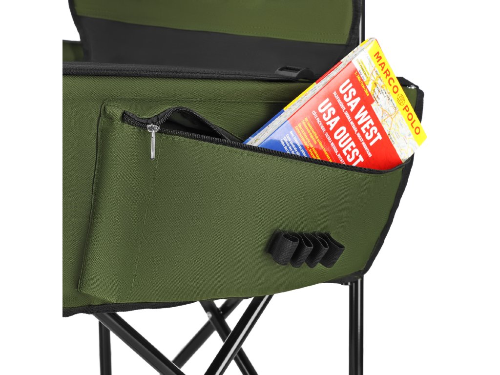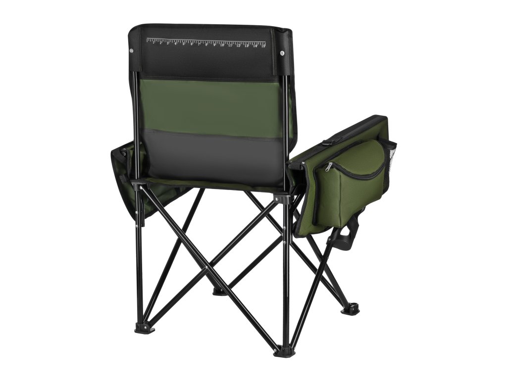 Vestavěné boční kapsy umožňují uložení drobných předmětů, jako jsou nápoje, turistické doplňky nebo občerstvení, které jsou tak vždy po ruce. Na zadní straně opěradla je natisknutá stupnice o délce 15 palců.