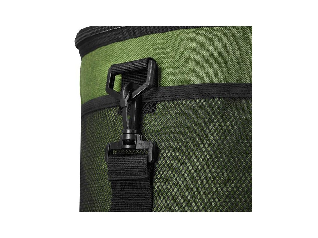Hlavní prostor tašky je zakončen odolnou a pro potraviny bezpečnou vrstvou PEVA, která účinně izoluje vnitřní prostor a udržuje správnou teplotu uložených produktů. Další vrstva PE zvyšuje izolační účinnost, zatímco odolný vnější materiál - polyester 600D - chrání obsah před vlhkostí a mechanickým poškozením. Díky tomu se taška osvědčí bez ohledu na počasí a roční období.