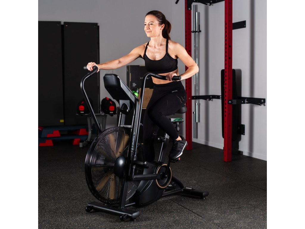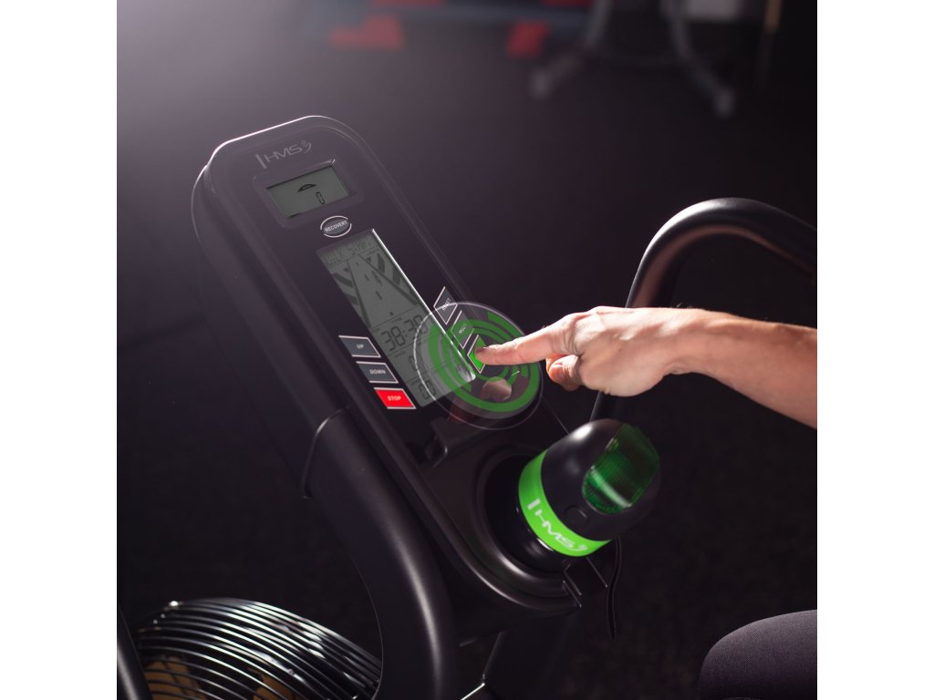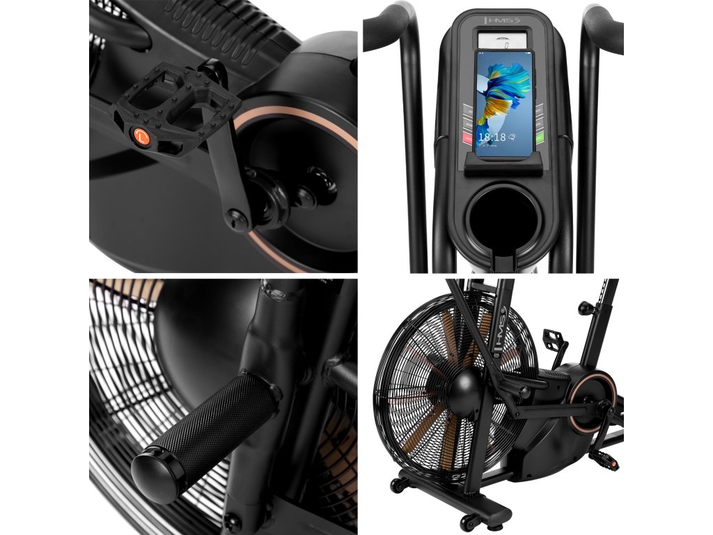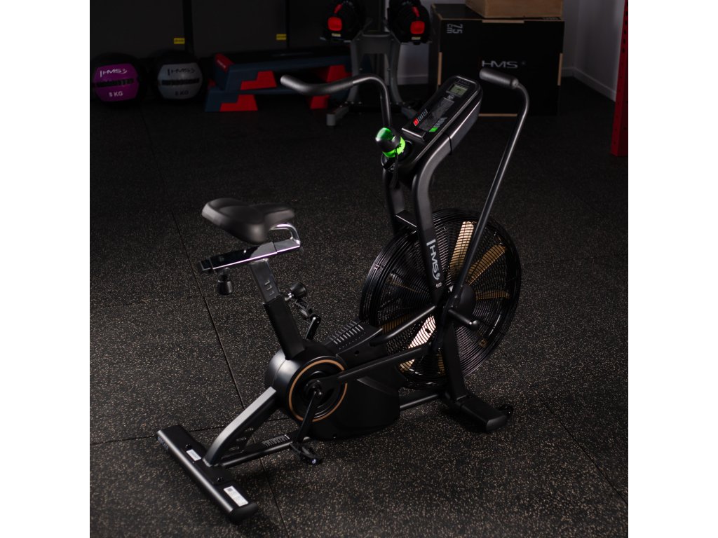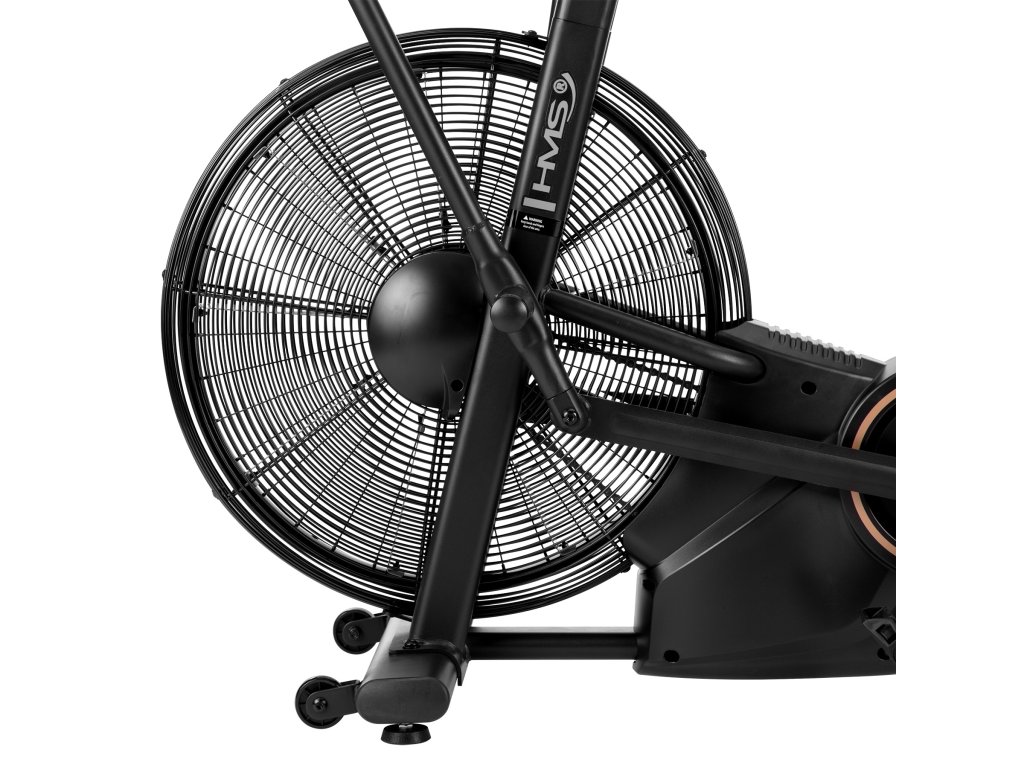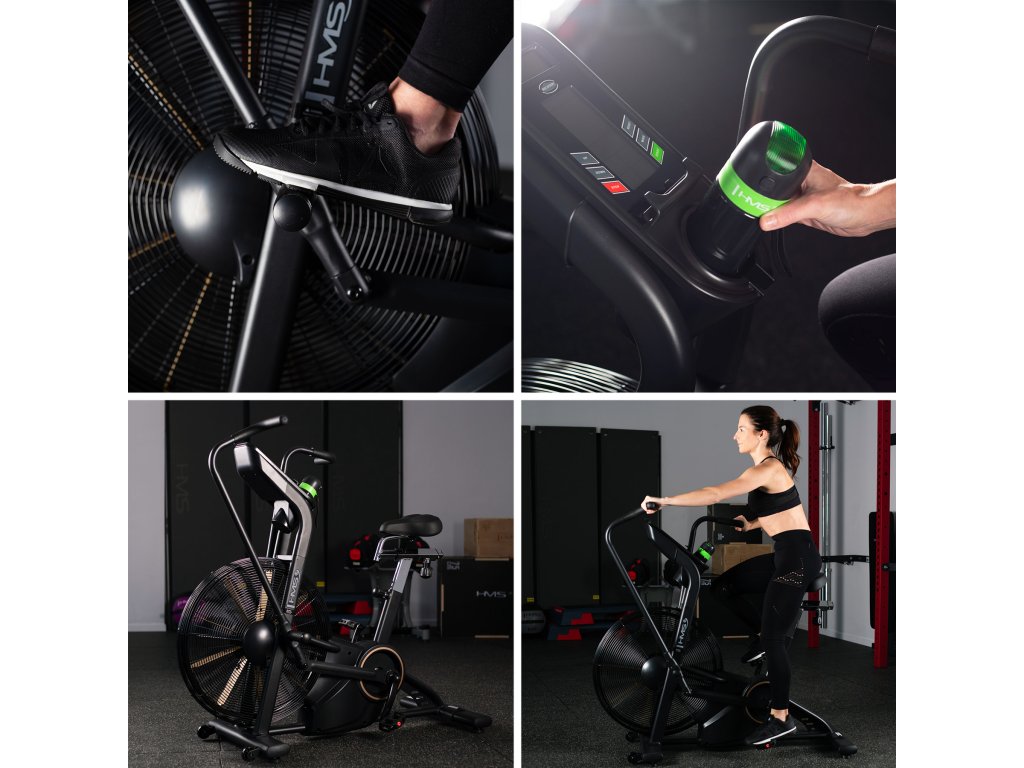 Air Bike HMS MP5458 se vyznačuje tím, že má pohyblivá ramena, která nutí pracovat paže, takže se do tréninku zapojují i svaly horní poloviny těla. Trénink na Air Biku posiluje obě nohy, paže, hrudník, záda a břicho. HMS MP5458 má brzdný systém tvořený odporem vzduchu, což znamená, že čím rychleji šlapete, tím větší je zatížení. Díky tomu se kolo přizpůsobuje našemu tempu a úrovni kondice.