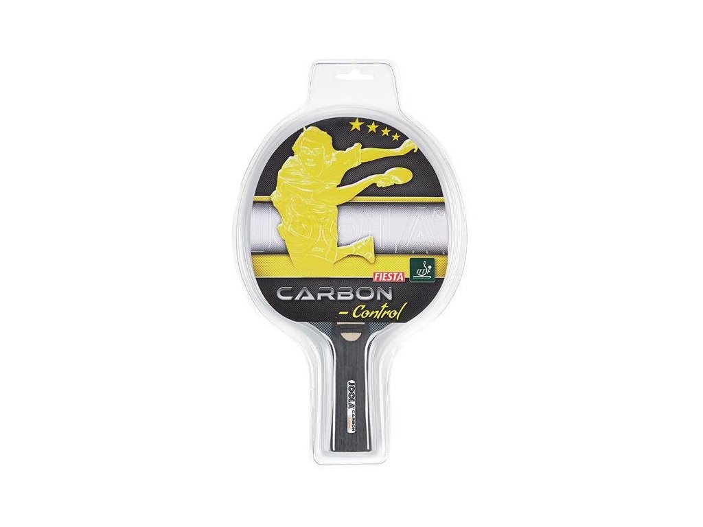 Velmi kvalitní pálka na stolní tenis od značky Joola. Pálka je vyrobena z pěti vrstvev dřeva a jednokarbonovou vložkou, zajišťující maximální ovladatelnost a manipulaci bez vibrací při údery. Pálka je potažena speciálním gumovým potahem Fiesta o síle 2,0 mm, díky kterému dosahuje pálka výborných herních vlastností. Potah je schválen Mezinárodní federací stolního tenisu (ITTF). Rozšířený tvar rukojeti zaručuje pohodlné držení a nehrozí vyklouznutí pálky. Pingpongová pálka Joola Carbon Control je určena pro pokročilejší hráče vyznávající takticky kontrolovaný styl hry. Motiv obalu dodávaný dle sklad. dostupnosti.