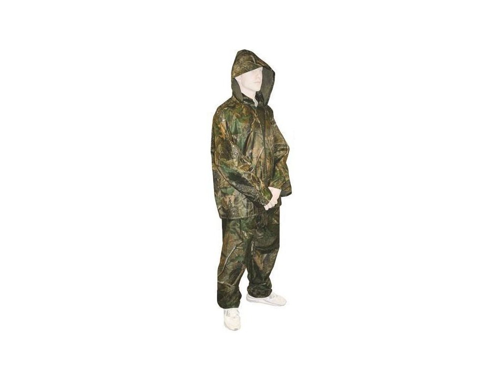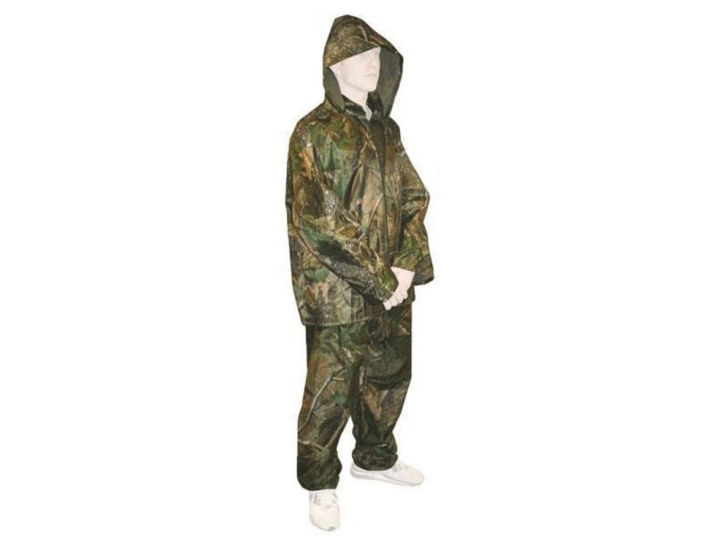 Plášťenka je rozdělena na bundu i kalhoty. Díky camo motivu je tento set skvělý zejména pro procházení lesem nebo při rybaření.