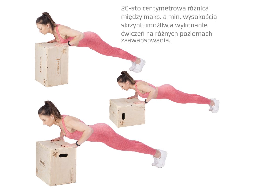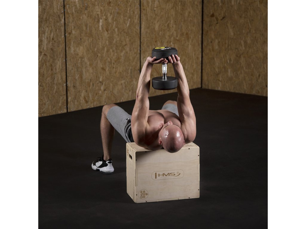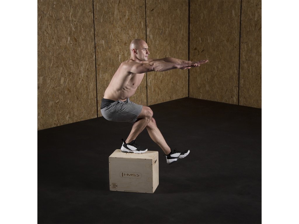 Plyometrický box HMS DSC04 je bedna určena pro kondiční trénink. Box je nedílnou součástí každého fitnesscentra, pomůckou profesionálních sportovců nebo i atletů. Vyroben je z 18 mm překližky a má rozměry 50 x 40 x 30 cm.
