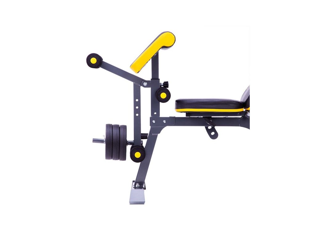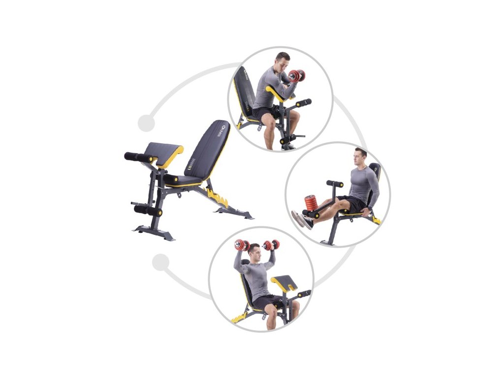 Zádová opěra je nastavitelná do 7-mi poloh a sedák do 3 poloh, ve vodorovné poloze lze na lavici provádět většinu cviků s činkami, předkopávat a zakopávat, pokud se opěra a sedák nastaví do negativního úhlu, pak získáme šikmou lavici k posilování břicha, k tomuto účelu je také možné zafixovat rám předkopávání do 3 úhlů, opěra v pozitivním úhlu slouží jako lavice pod velkou činku nebo jako lavice k posilování bicepsů.