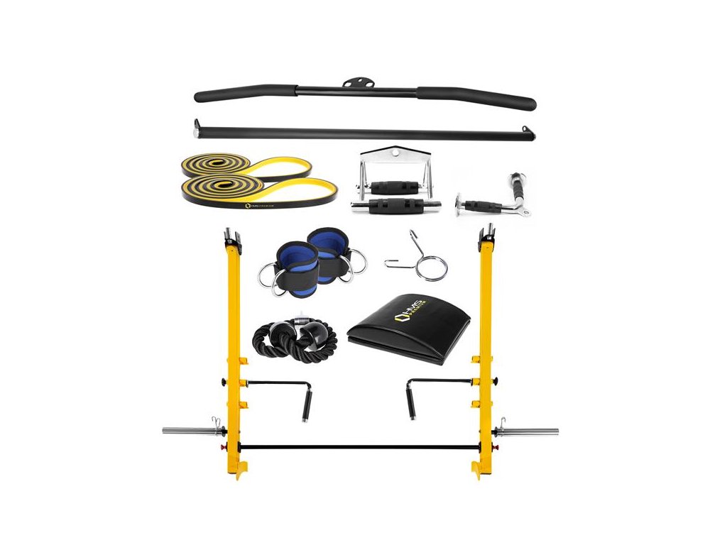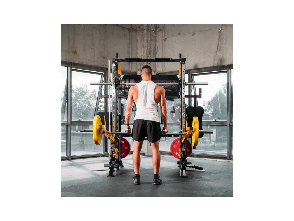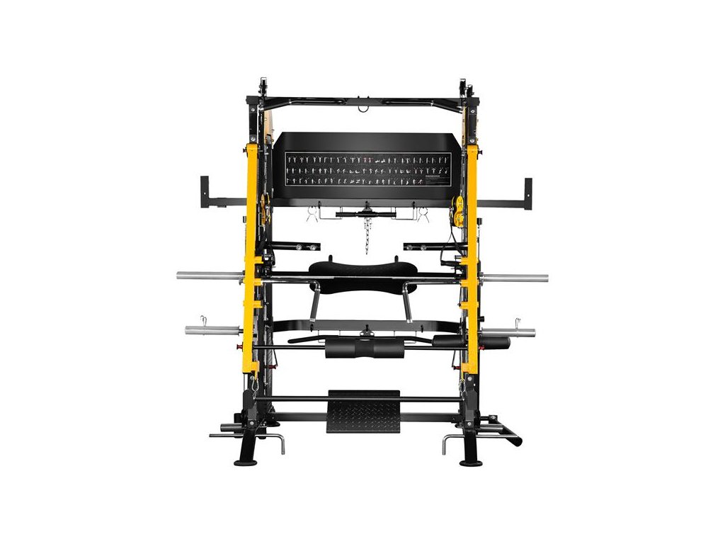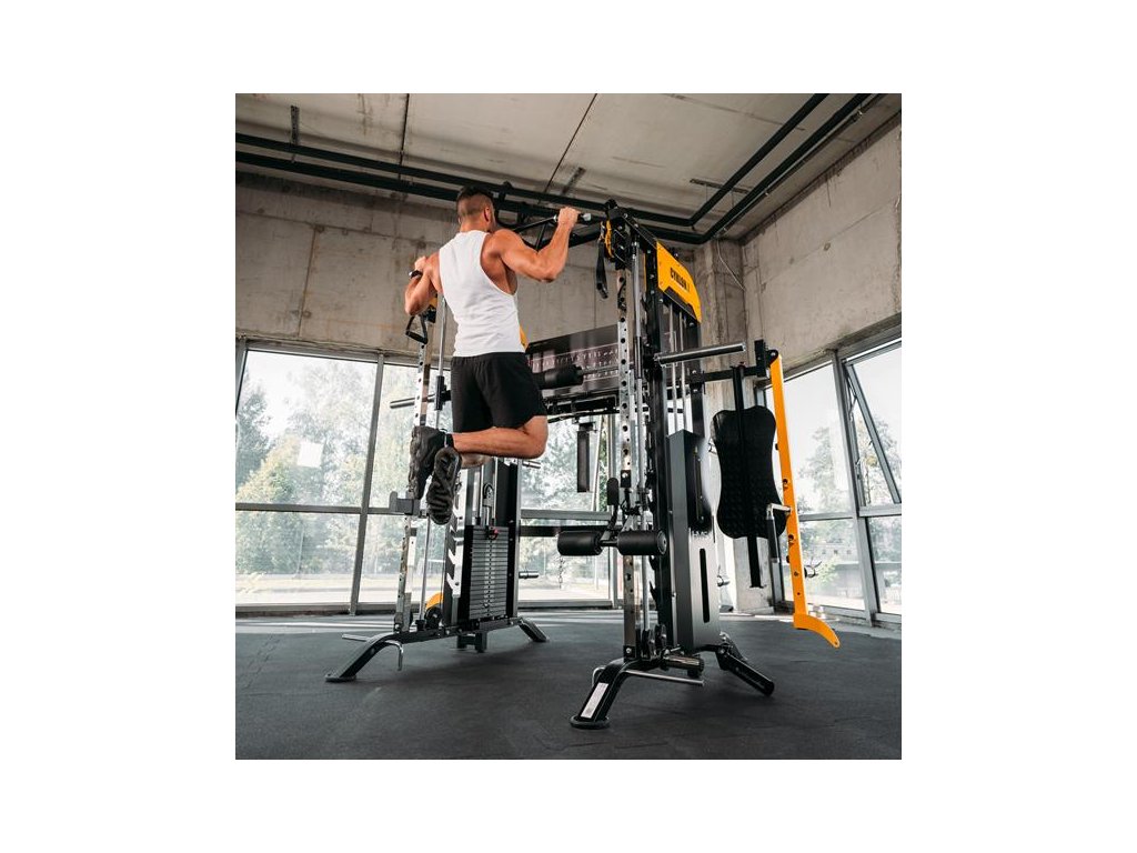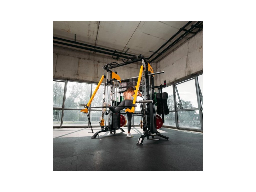 Zadní deska je opatřena schématem s různými cviky na kladkách, které vás bude inspirovat ke zkoušení nových technik. Důležité je, že veškeré příslušenství má své místo – od svorek až po pohyblivá ramena Jammer Arms, která zajistí, že váš tréninkový prostor zůstane uspořádaný a připravený k akci.