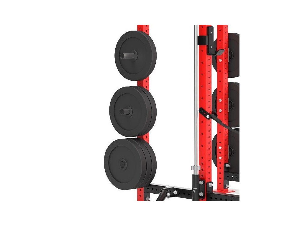 Trn se připevní ke stojně, nebo nosníku pomocí 2 ks dodávaných šroubů. Po dotažení je trn ideální k odkládání olympijských kotoučů s průměrem otvoru 50 mm.