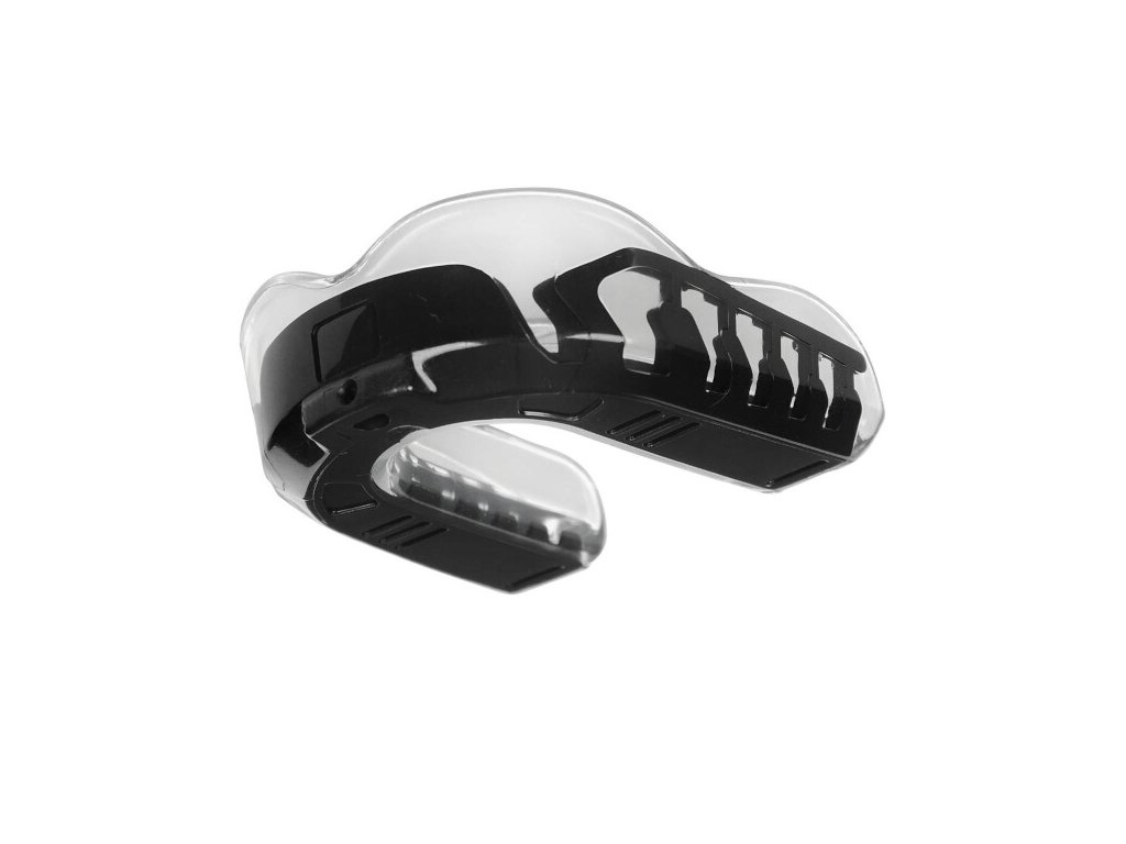 Přídavná, zesílená zóna v místě skusu lépe tlumí údery do brady, při kterých dochází k silnému nárazu dolní čelisti do horní čelisti. Dodatečné tlumení snižuje riziko poškození a vyražení zubů.