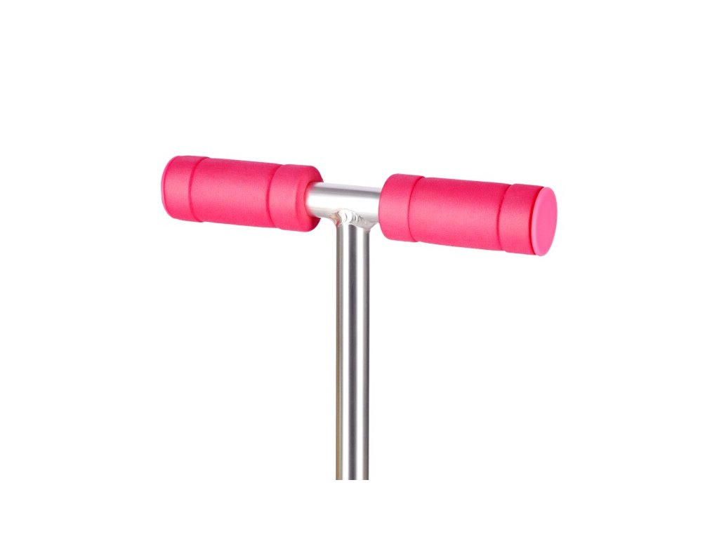 Teleskopická řídítka jsou výškově nastavitelná do 3 poloh (57 - 62 - 67 cm od země). Změna nastavení výšky se provádí uvolněním objímky, stisknutím pojistného čepu a vysunutím, nebo zasunutím vnitřní tyče řídítek. Pro úsporu místa lze řídítka demontovat - k tomu je potřeba stisknout tlačítko, které je přístupné ze spodní strany koloběžky. Tento systém sklápění je maximálně bezpečný a nemůže dojít k nechtěnému sklopení během jízdy. Gripy na řídítkách jsou vyrobeny z pěny, šířka řídítek je 25 centimetrů.