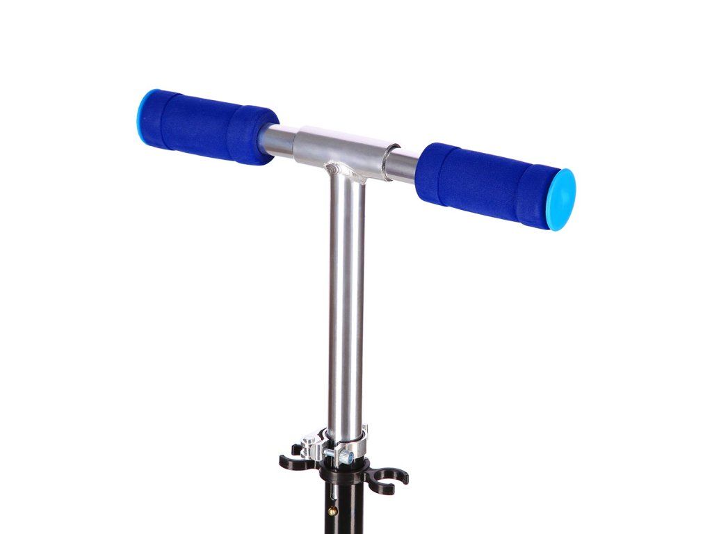 Teleskopická řídítka jsou výškově nastavitelná do 4 poloh (60 - 68 - 73 - 78 cm od země). Změna nastavení výšky se provádí uvolněním páčky rychloupínáku, stisknutím pojistného čepu a vysunutím, nebo zasunutím vnitřní tyče řídítek. Pro úsporu místa lze řídítka složit - k tomu je potřeba uvolnit páčku spodního rychloupínáku a potáhnout táhlo směrem nahoru, řídítka lze následně sklopit. Gripy na řídítkách jsou vyrobeny z TPR pro pevný a pohodlný úchop, šířka řídítek je 32 centimetrů a madla lze sklopit.