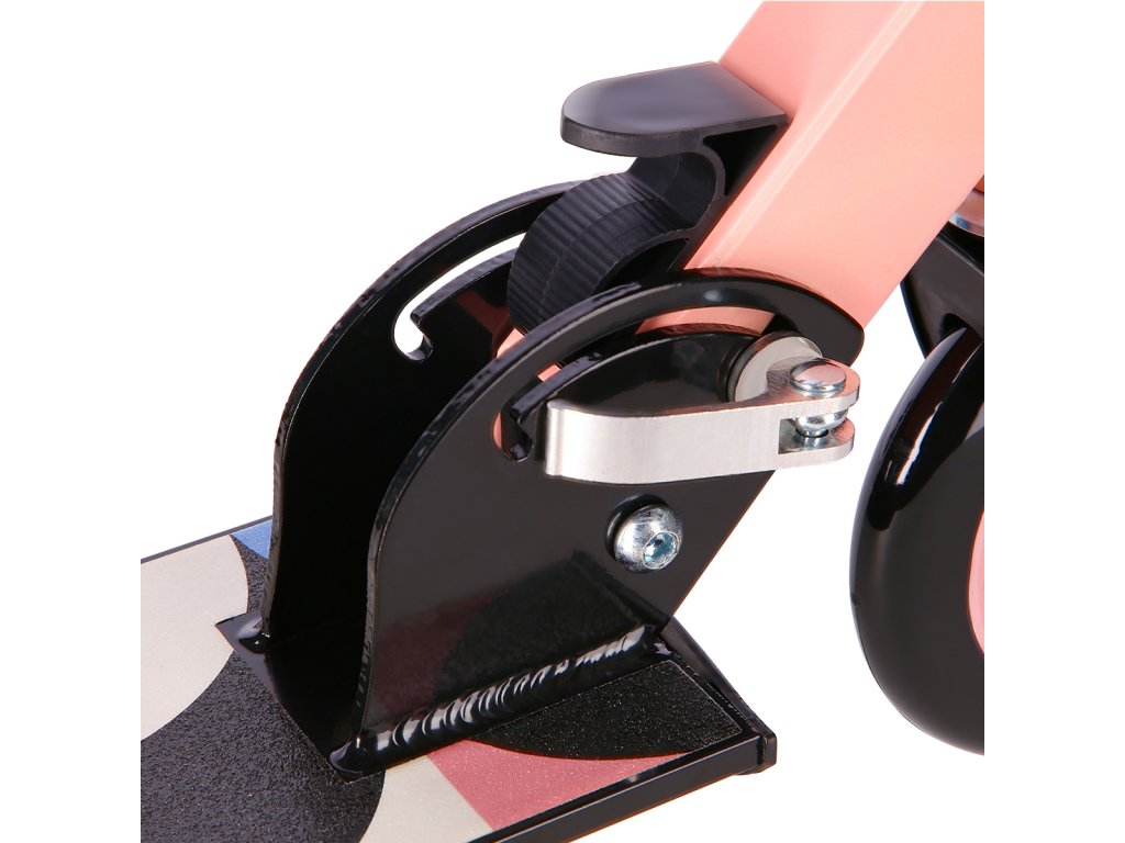 Koloběžka má na zadním kole nášlapnou brzdu pro bezpečnou jízdu a rychlé zastavení koloběžky.