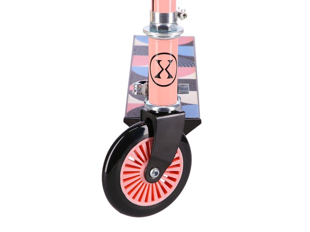 Řídítka jsou výškově nastavitelná do čtyř poloh (60 - 70 - 75 - 80 cm). Samotné gripy (madla) jsou pěnové pro jistý úchop. Řídítka lze pro úsporu místa zasunout a sklopit, správnou polohu řídítek zajišťuje jistící čep. Kola o průměru 125 milimetrů a ložiska třídy ABEC 5 zajišťují pohodovou jízdu. Kola jsou bezdušová, polyuretanová.