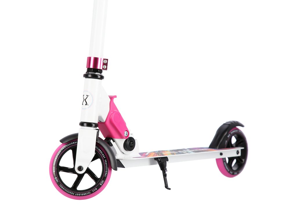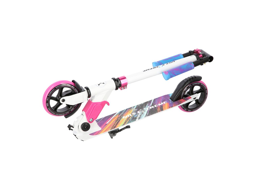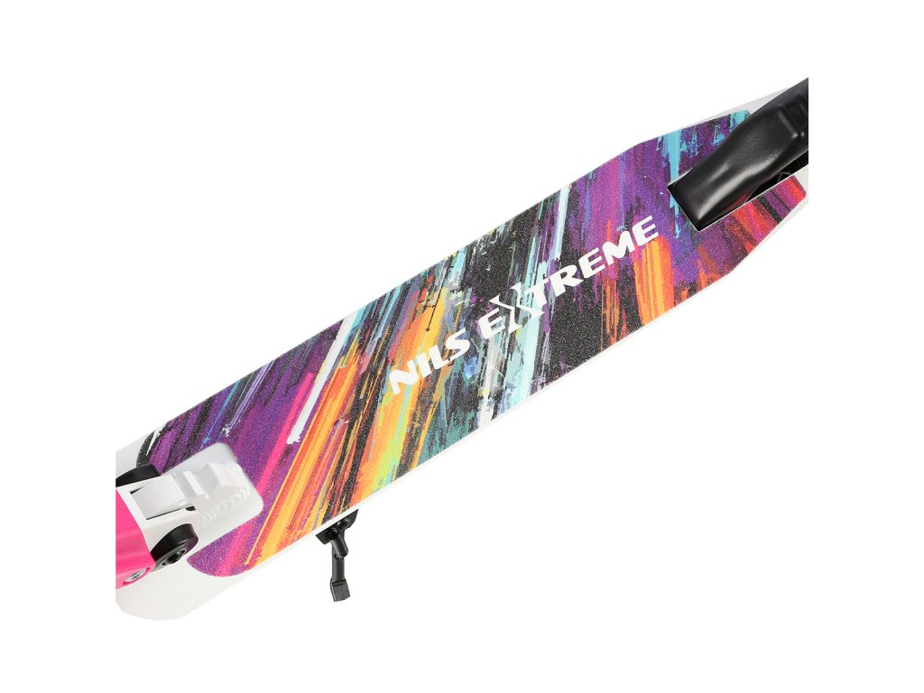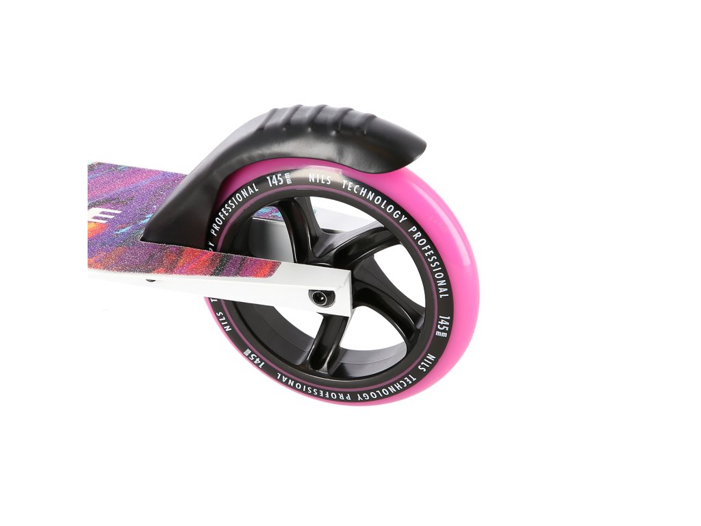 Skládací koloběžka NILS Extreme HD541 je určená především pro děti a dorost. Hlavní předností tohoto modelu jsou polyuretanová kolečka o průměru 145 milimetrů, které zaručují pohodlnou jízdu. Koloběžku lze složit, takže při uskladnění nezabírá mnoho místa a zároveň si ji můžete brát téměř kamkoliv sebou ať už jedete na výlet například vlakem a nebo pokud jedete autem na dovolenou do zahraničí. Dalšími výraznými prvky jsou protiskluzová nášlapná plocha, gumová madla a zadní přítlačná brzda. Klademe důraz především na atraktivní vzhled a kvalitní provedení, díky kterému máte jistotu, že kupujete kvalitní koloběžku jenž potěší a zároveň i ochrání. Chcete-li pro bezpečnost udělat maximum, nezapomeňte se porozhlédnout po přilbě a chráničích.