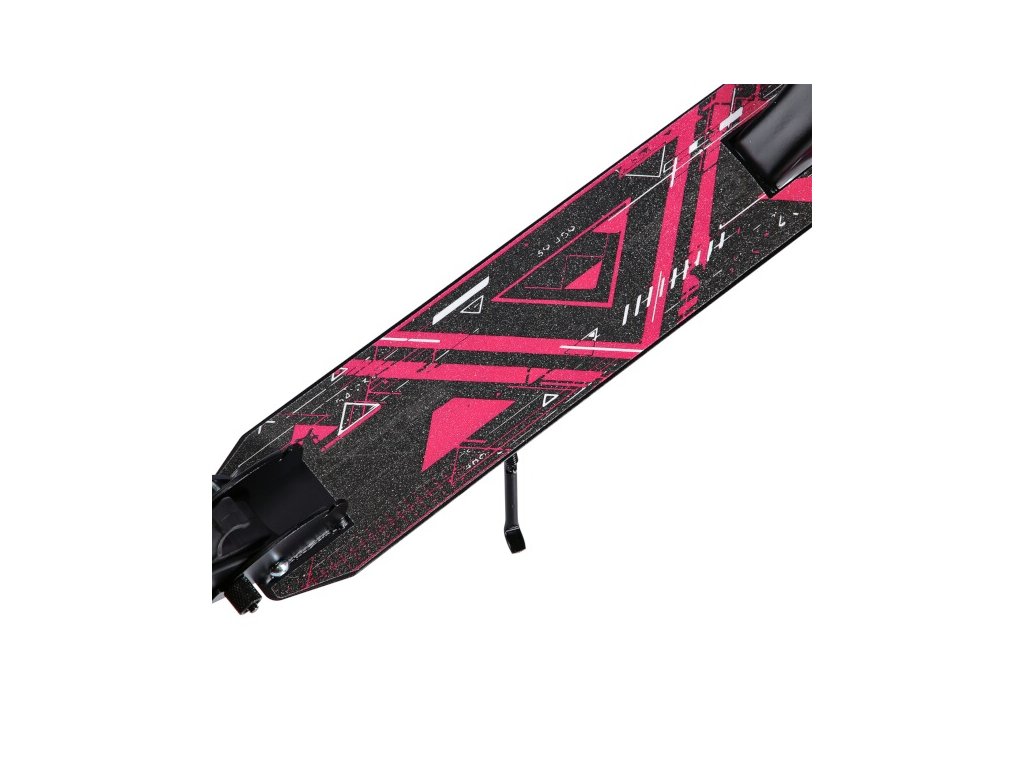 Zadní blatník slouží jako přítlačná brzda. Rídítka je možné při skládání sklopit a pro maximální pohodlí během jízdy jsou opatřena gumovými rukojeťmi. Výšku řídítek lze nastavit do 3 úrovní v rozsahu od 79 do 103 cm.