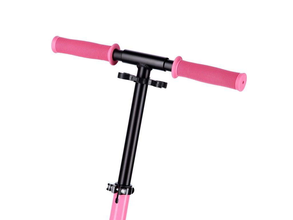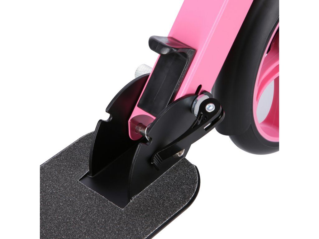 Zadní blatník slouží jako přítlačná brzda. Rídítka je možné při skládání sklopit a pro maximální pohodlí během jízdy jsou opatřena gumovými rukojeťmi. Výšku řídítek lze nastavit do 3 úrovní v rozsahu od 75 do 95 cm.