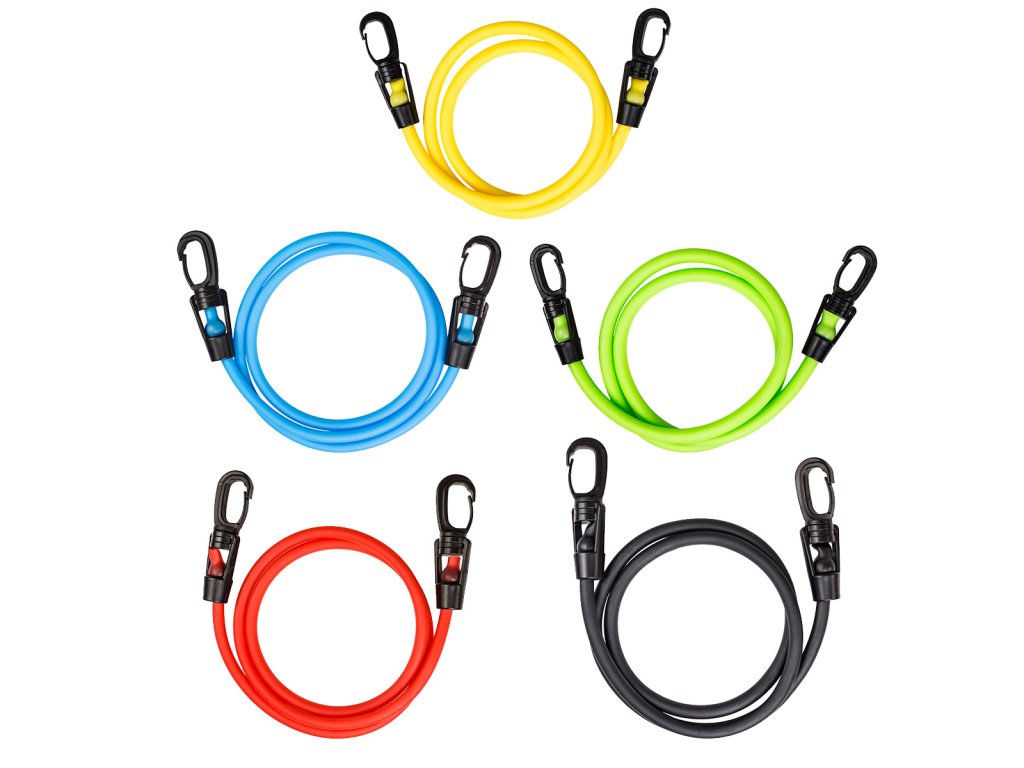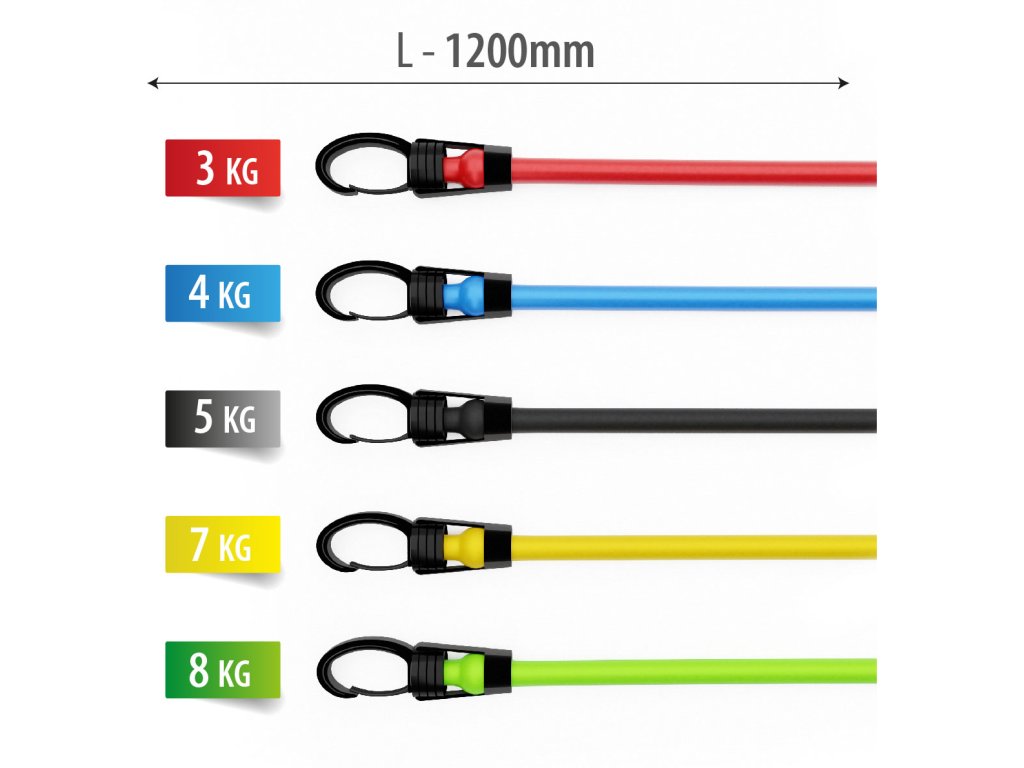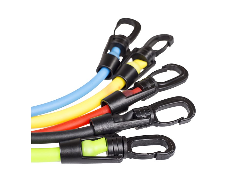 Každá dvojice gum má jinou tuhost, která vám umožní vybrat různé úrovně intenzity cvičení. Na každé z gum může být rukojet, což umožňuje realizaci komplexního tréninku všech svalových skupin.
