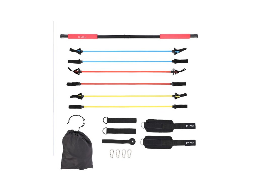 Sestava s tyčí na pilates HMS DC31 obsahuje sadu expandérů, zarážku za dveře a 2 páry popruhů, díky tomu umožňuje provádět širokou škálu cviků. Do jisté míry dokáže zastoupit odporové gumy a gumy thera band. Tato sestava HMS DC31 najde své uplatnění při jakémkoliv tréninku, či rehabilitaci. Posilovací tyč se využívá pro trénink horních a dolních svalových partií. Trénink s DC31 zvyšuje mobilitu a zlepšuje koordinaci.
