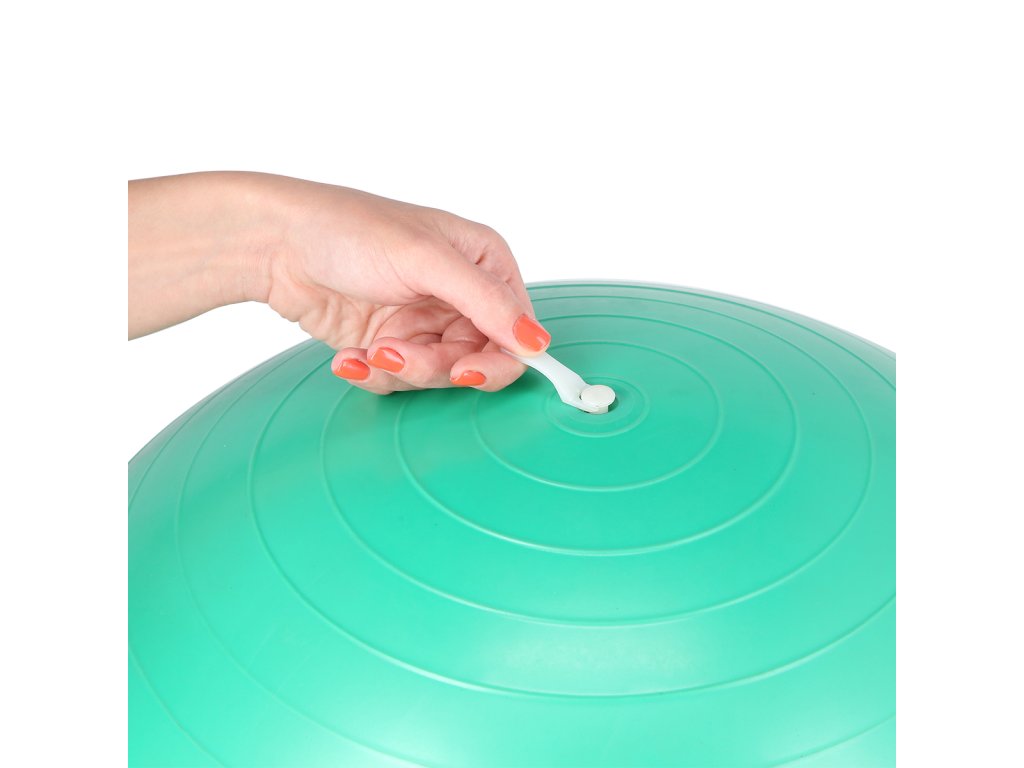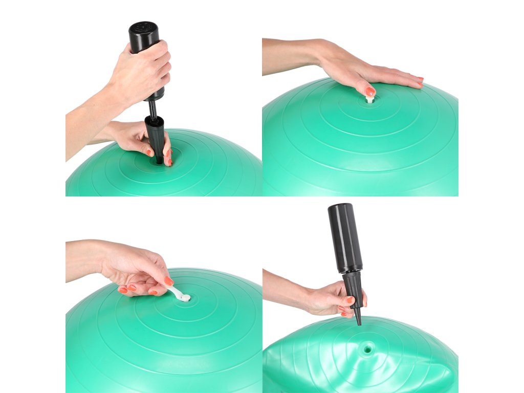 Gymnastický míč je vyroben z velice odolné gumy s protiskluzovým povrchem. Součástí balení je ruční pumpička, pomocí které lze míč nafouknout, špunt a přípravek pro vyjmutí špuntu z míče. Průměr míče by měl odpovídat výšce postavy, pro správný výběr naleznete níže přehledovou tabulku.