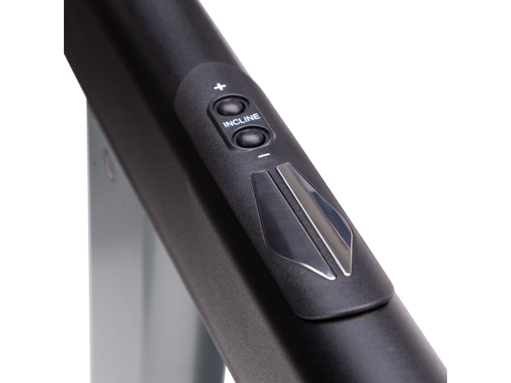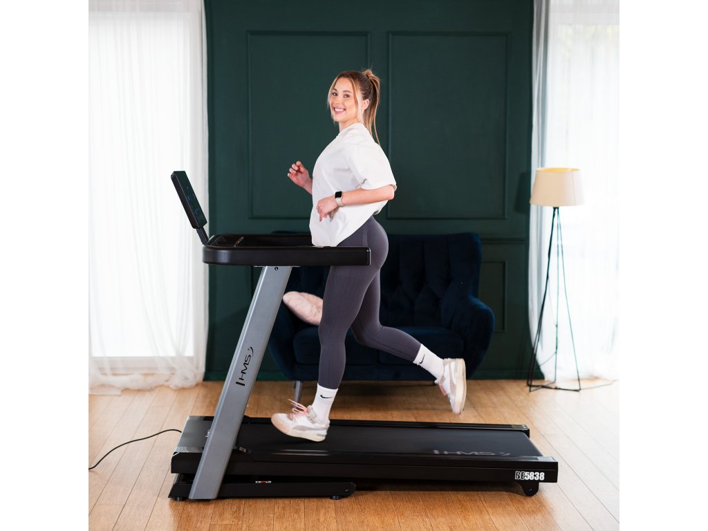 Trenažér má velkorysou běžeckou plochu o rozměrech 142 x 50 cm a pokročilý systém odpružení sestávající ze 6 vnitřních silentbloků, které minimalizují namáhání kloubů a zvyšují pohodlí při dlouhém tréninku. Díky funkci Soft Drop se běžecká plocha snadno zvedá a plynule spouští pro úsporu místa a zařízení se snadno přemisťuje a skladuje díky transportním kolečkům. Ve složeném stavu zabírá běžecký pás méně místa, což z něj činí praktické řešení.