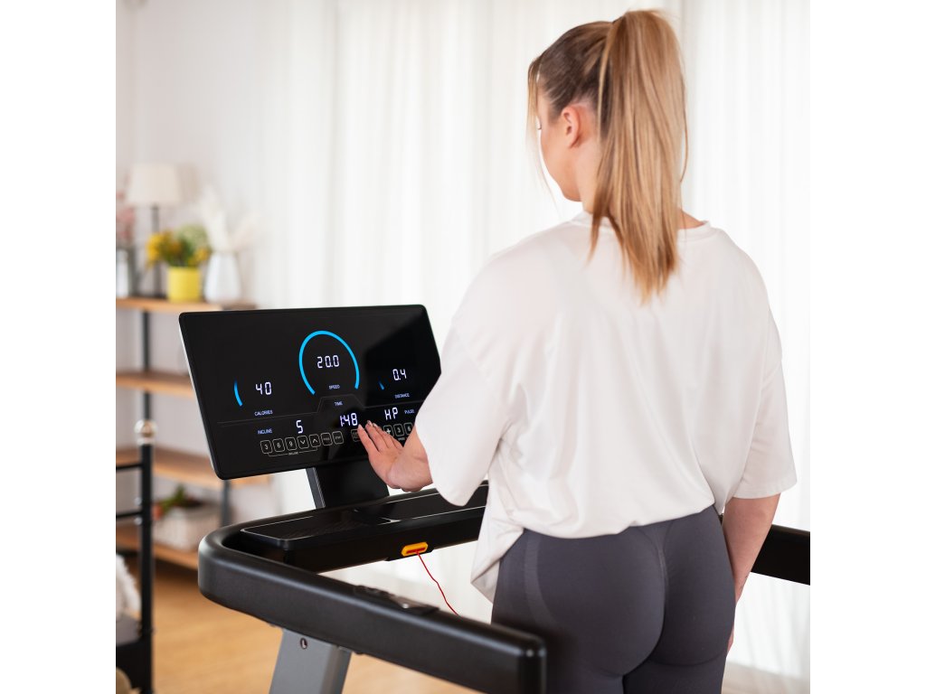 Běžecký pás BE5838 je vybaven počítačem s LED displejem a nabízí 36 vestavěných tréninkových programů, 3 uživatelské programy a 1 manuální program, takže si každý najde ten svůj ideální program. Vestavěná funkce Body Fat (procento tělesného tuku) a měření času, vzdálenosti, rychlosti, kalorií, pulsu pomáhají sledovat pokroky a kontrolovat zdravotní parametry, zatímco pohodlná tlačítka na rukojetích umožňují rychlé ovládání rychlosti a sklonu bez přerušení cvičení.