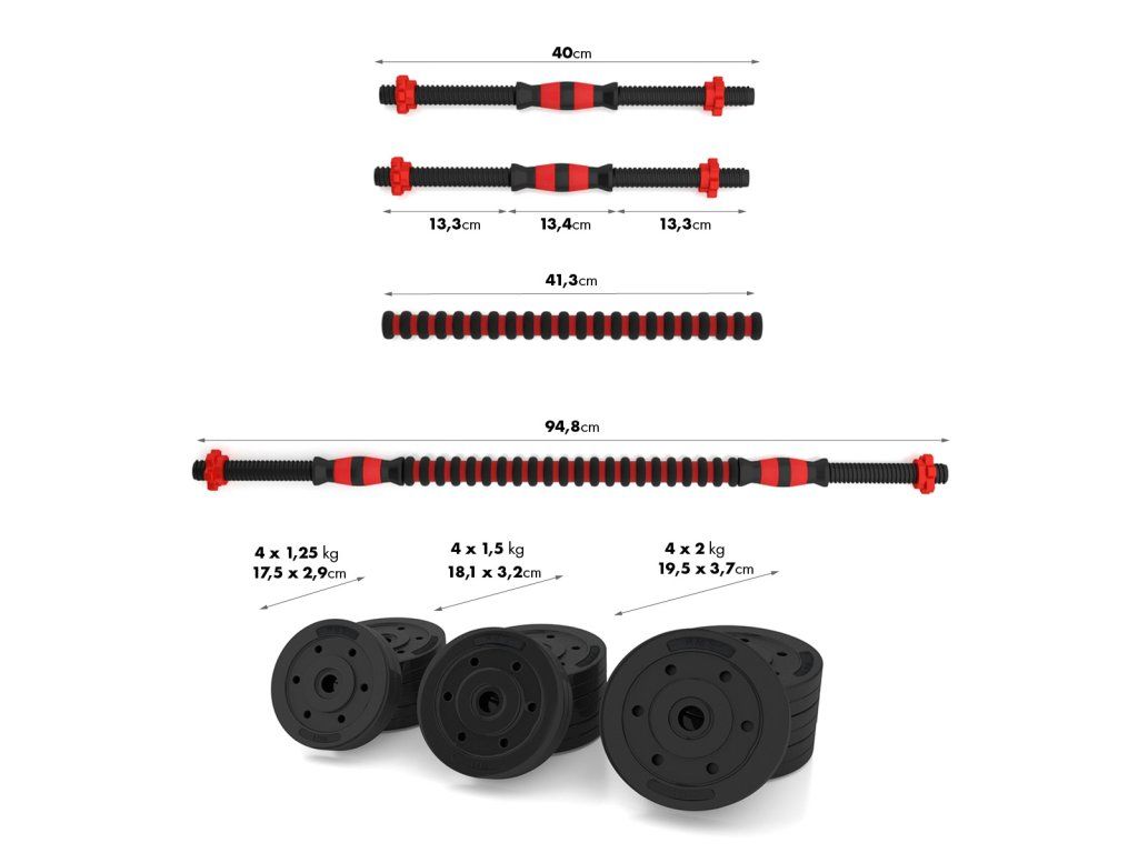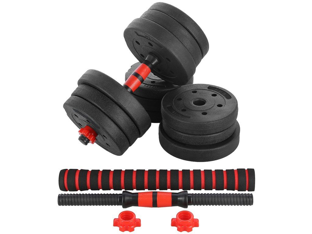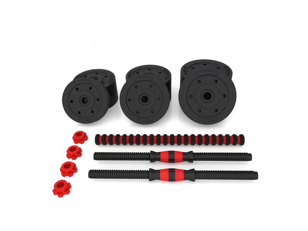 Kompletní nakládací sada dvou jednoručních a jedné obouruční činky o celkové hmotnosti 20 kilogramů, to je HMS SGP20. Nakládací činky patří ke klasickému vybavení každé domácí posilovny. Kotouče jsou vyrobeny z tvrdého plastu, který je vyplněn cementem. Obouruční osa je spojovacím dílem, do kterého se všroubují hřídele jednoručních činek. Nakládací trny jsou opatřeny závitem a závaží se zajišťuje pomocí hvězdicových matic.