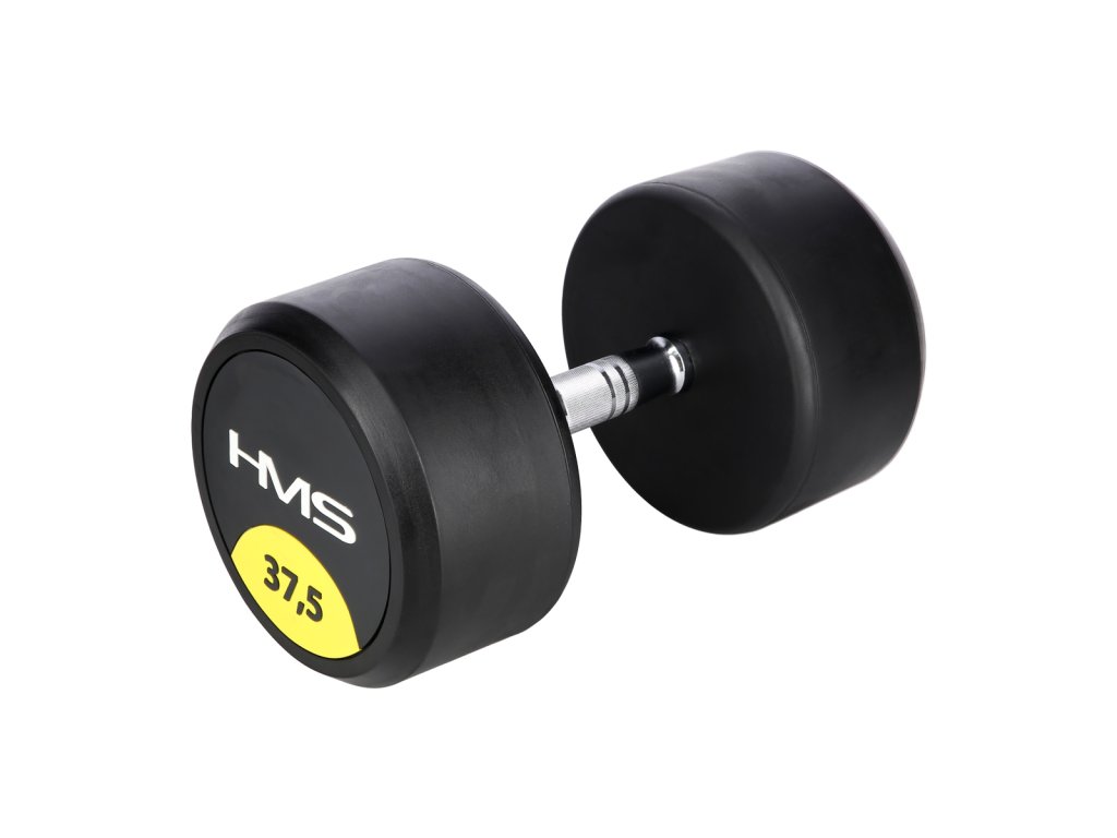 37,5 kilogramová jednoruční činka HMS HG Pro je určená pro profesionální použití jak doma tak v posilovně. Závaží tvoří litinový odlitek pokrytý silnou vrstvou gumy, která ochrání jak činku, tak podklad před poškozením. Na čelní straně je značka HMS a údaj o hmotnosti v kilogramech. Rukojeť je vyrobena z chromované oceli, pro pohodlný úchop má soudkovitý tvar s vroubkovaným povrchem.