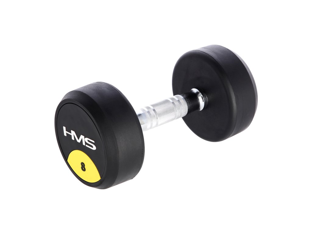 8-mi kilogramová jednoruční činka HMS HG Pro je určená pro profesionální použití jak doma tak v posilovně. Závaží tvoří litinový odlitek pokrytý silnou vrstvou gumy, která ochrání jak činku, tak podklad před poškozením. Na čelní straně je značka HMS a údaj o hmotnosti v kilogramech. Rukojeť je vyrobena z chromované oceli, pro pohodlný úchop má soudkovitý tvar s vroubkovaným povrchem.