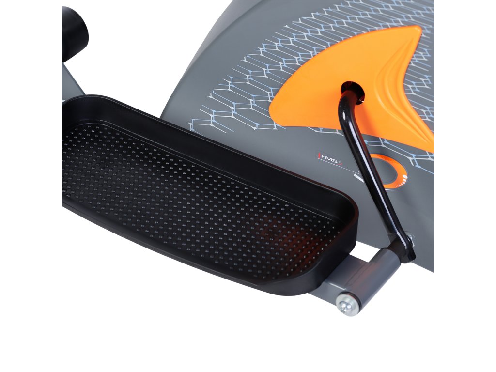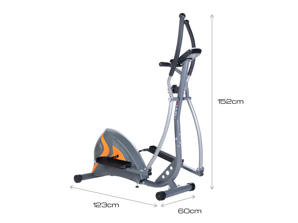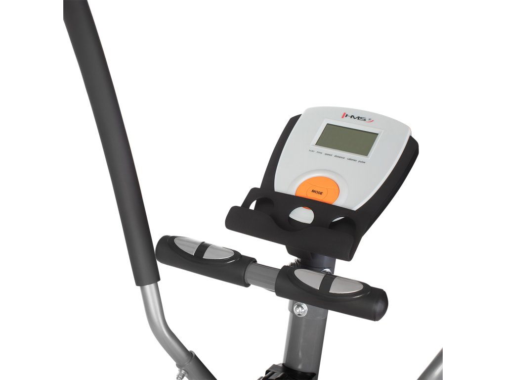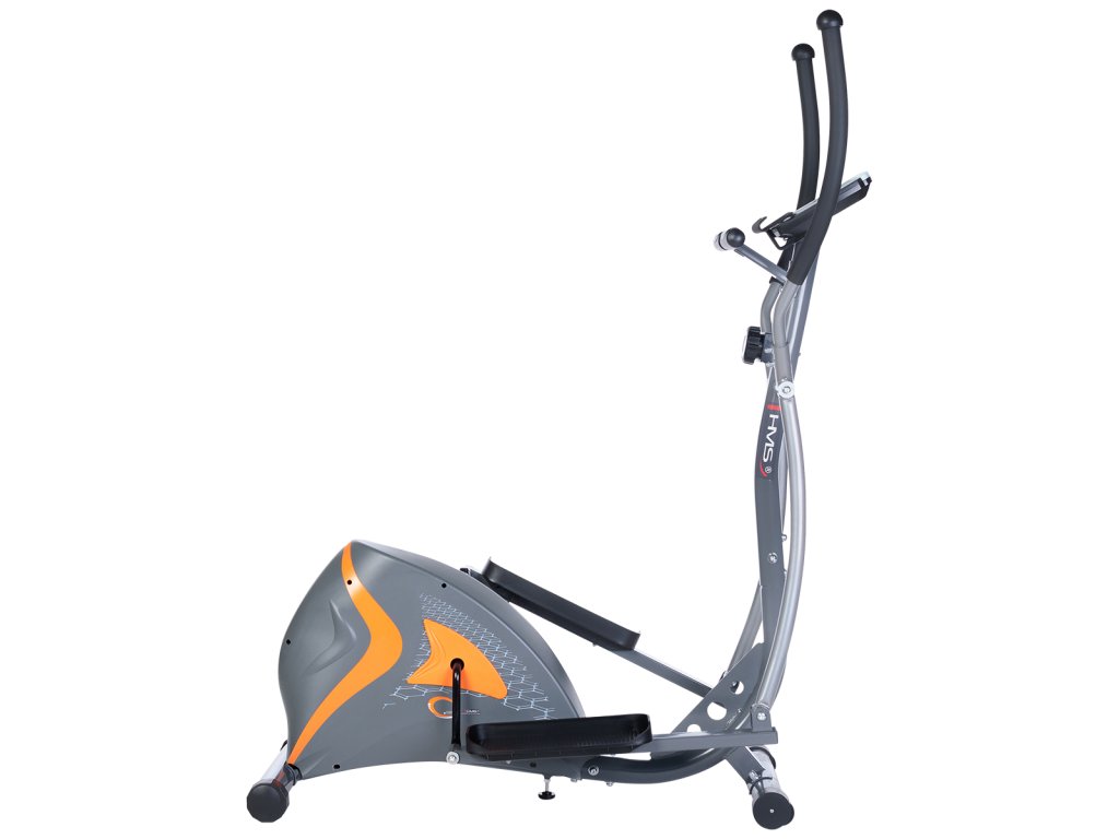 Magnetický eliptický trenažér HMS H2205 je univerzální zařízení pro celkové zlepšení zdraví, snížení tělesného tuku a zlepšení účinnosti organismu. Model H2205 je vybaven 6-ti kilogramovým setrvačníkem a manuálně ovládanou, magnetickou brzdou. Nášlapy jsou opatřeby protiskluzovou úpravou pro pohodlné cvičení. Velký LCD displej počítače přehledně zobrazuje veškeré důležité informace během tréninku, pod ním nalezneme stojánek pro mobilní zařízení a elektrody pro snímání tepové frekvence.