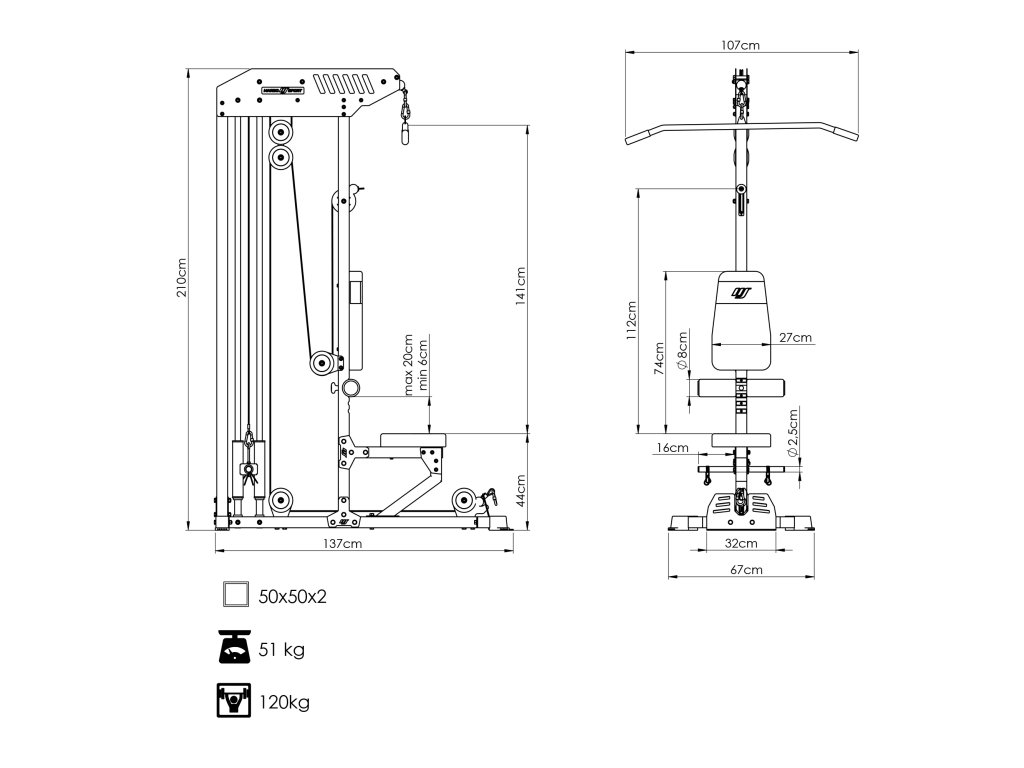 Spodní a horní stahovací kladka s sedátkem MARBO Sport MS-W101 2.0 je všestranné tréninkové zařízení navržené s ohledem na pohodlí a bezpečnost uživatele, které lze využít mnoha způsoby při silovém a všeobecném rozvoji.