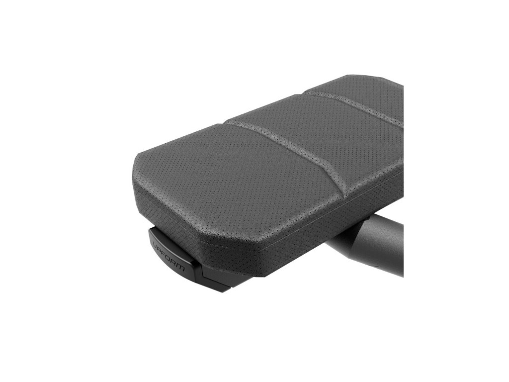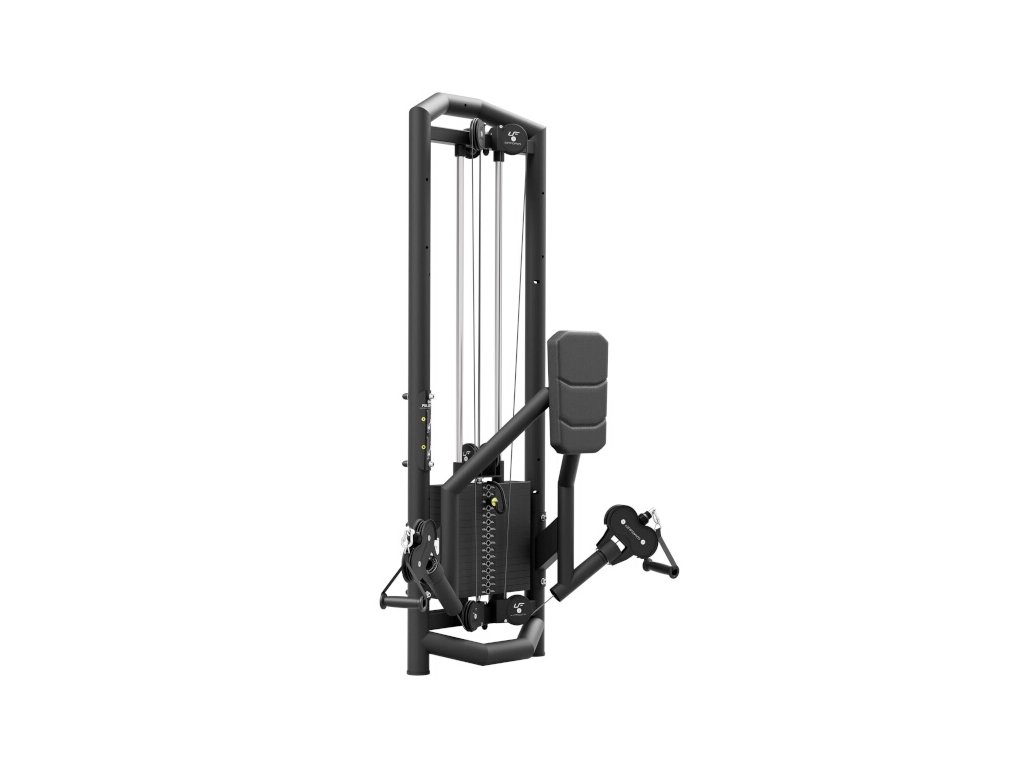 Spodní dvojitá kladka UpForm UF-006 je vybavena sadou závaží čítající 16 cihel o celkové hmotnosti 120 kilogramů odstupňovaných po 7,5 kg. Volič váhy je opatřen nálepkami pro rychlou volbu požadované zátěže a jistící čep je připevněn na lanku, takže nehrozí jeho ztráta. Na opěru bylo použito perforované čalounění, které zajišťuje dostatečnou ventilaci a odvod vlhkosti. Ramena kladky jsou otočná o 360°. Veškeré kladky jsou schovány pod kovovými kryty s logem UpForm. Ocelové lanko je pokryto černým PVC, je zakončeno masivním okem a je odpruženo gumovým tlumičem.