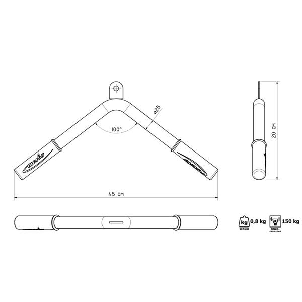 Tricepsový adaptér MARBO MH-C105 je vhodným doplňkem Vašich posilovacích zařízení. Toto příslušenství slouží především k vrchnímu stahování kladky, při kterém posílíte svaly tricepsu. Maximální zatížení kladky je 150kg.