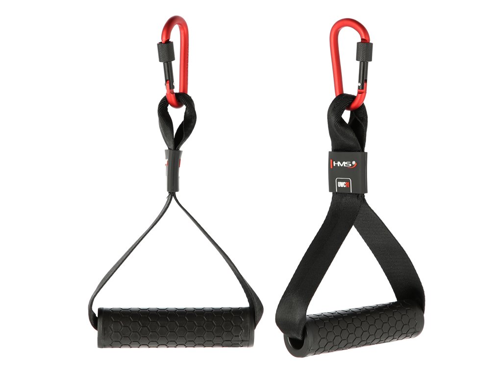 Adaptér HMS UWC91 je úchyt k horní a spodní kladce, nebo jde zapnout k posilovací gumě. Madlo z vysoké vrstvy gumy zaručuje vysoký komfort tréninku a pevný úchop. Hliníková, šroubovací karabina složí k rychlému a bezpečnému zaháknutí kladky.