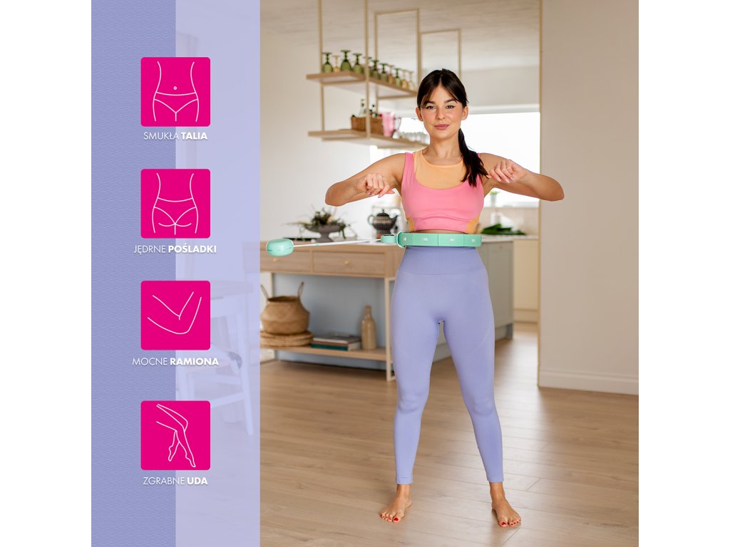 FH02 je hula hop obruč s nastavitelnou délkou, masážními výstupky a rotujícím závažím.