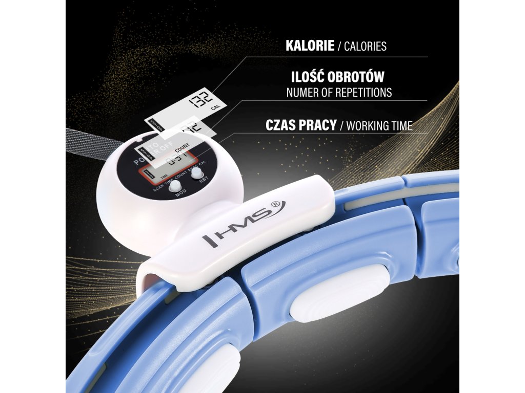 HMS HHM15 je hula hoop obruč s nastavitelným obvodem, masážními magnetickými výstupky, rotujícím závažím a počítadlem.