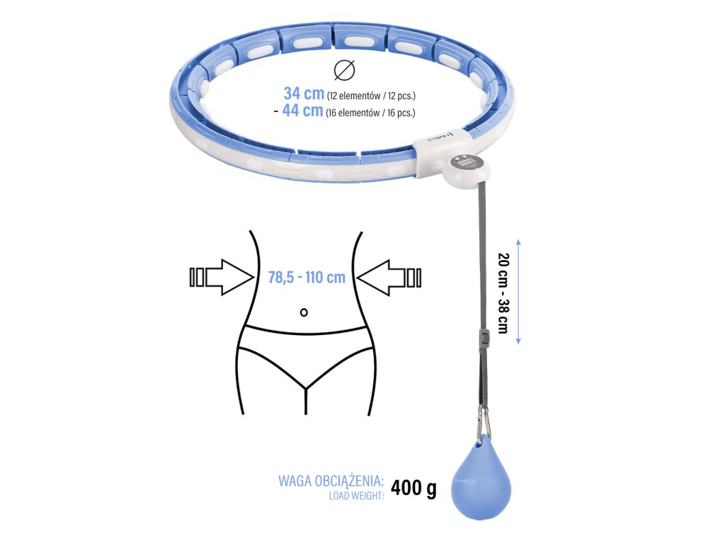 Masážní hula hoop HMS HHM15 se závažím, magnety a počítadlem modrá