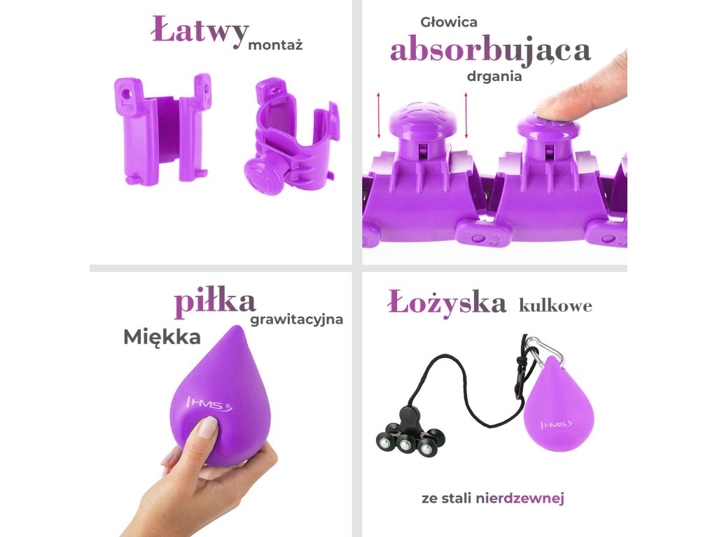 HMS HHW12 je hula hop obruč s nastavitelnou délkou, masážními výstupky a rotujícím závažím.
